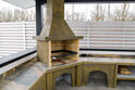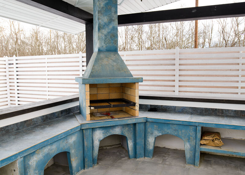 Барбекю зона для приготовления семейного ужина на открытом огне.