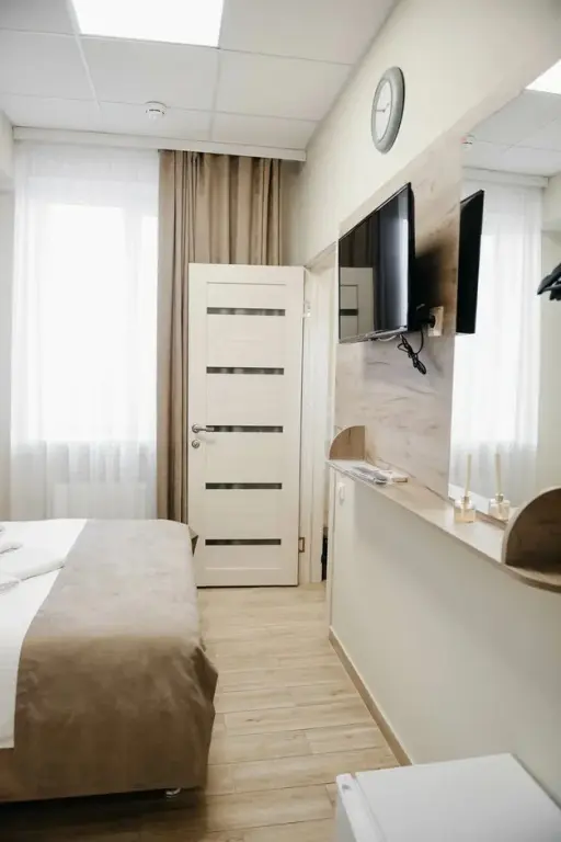 Номер уютно обставлен и оснащён необходимым, чтобы отдохнуть после долгого и насыщенного дня. Имеются телевизор. Перечисленные услуги есть не во всех номерах.