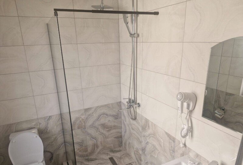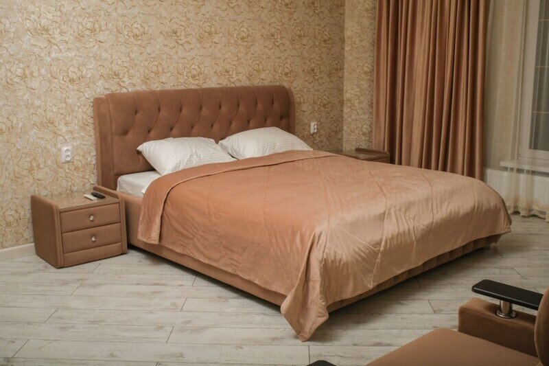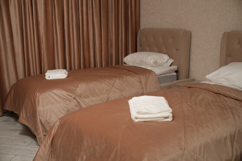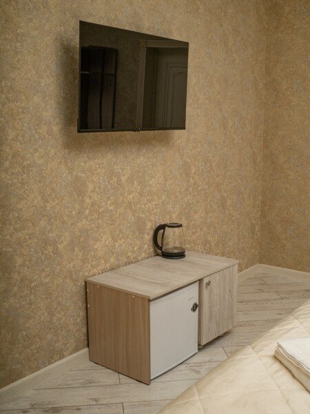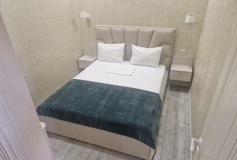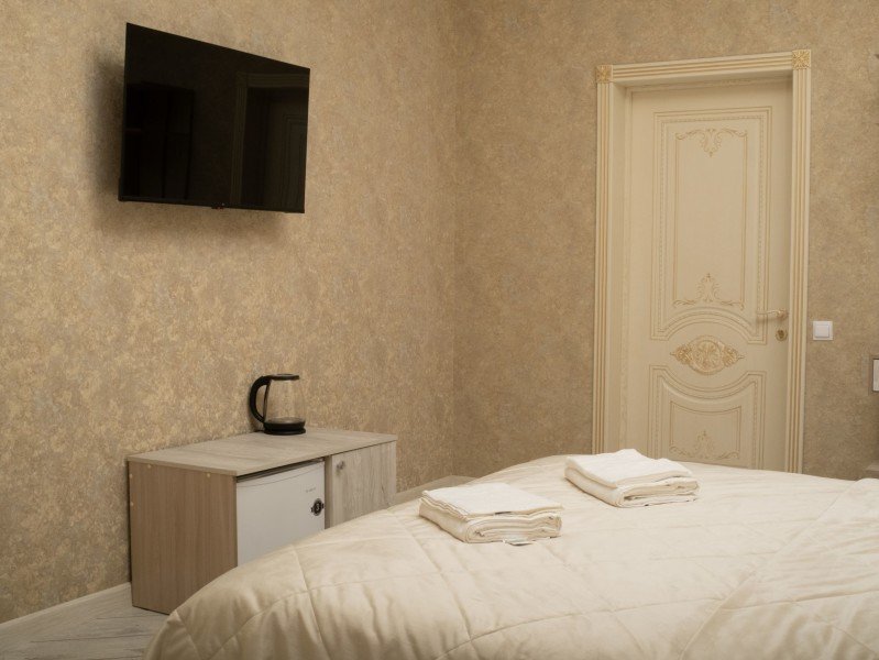 Двухместный номер с двуспальной кроватью оснащён ТВ, холодильником, феном, современным сан.узлом.