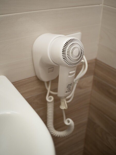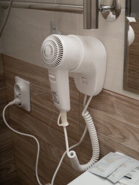 В каждом номере личные принадлежности - тапочки, халат, полотенца, шампуни.