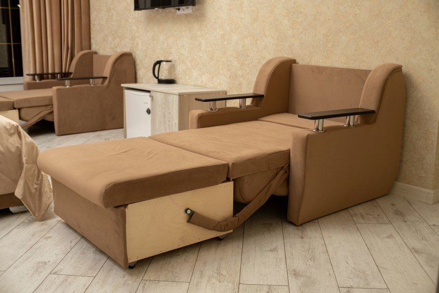 Одна двуспальная кровать, одно раскладное креслоВ номере