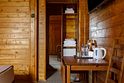 Гостям основной территории также доступен горячий бассейн и сауна с панорамным видом на хребет Уна-Коз. Есть зона джакузи, рядом с бассейном расположены шезлонги, на которых можно позагорать, предоставляются полотенца для купания. Бассейн, сауна, джакузи, шезлонги и полотенца для купания — предоставляются для проживающих бесплатно.
