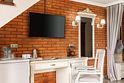 В отеле несколько корпусов, мы жили в деревянном в стиле шале. Номер небольшой, но все необходимое имеется, чисто. Большая парковка, бассейн.