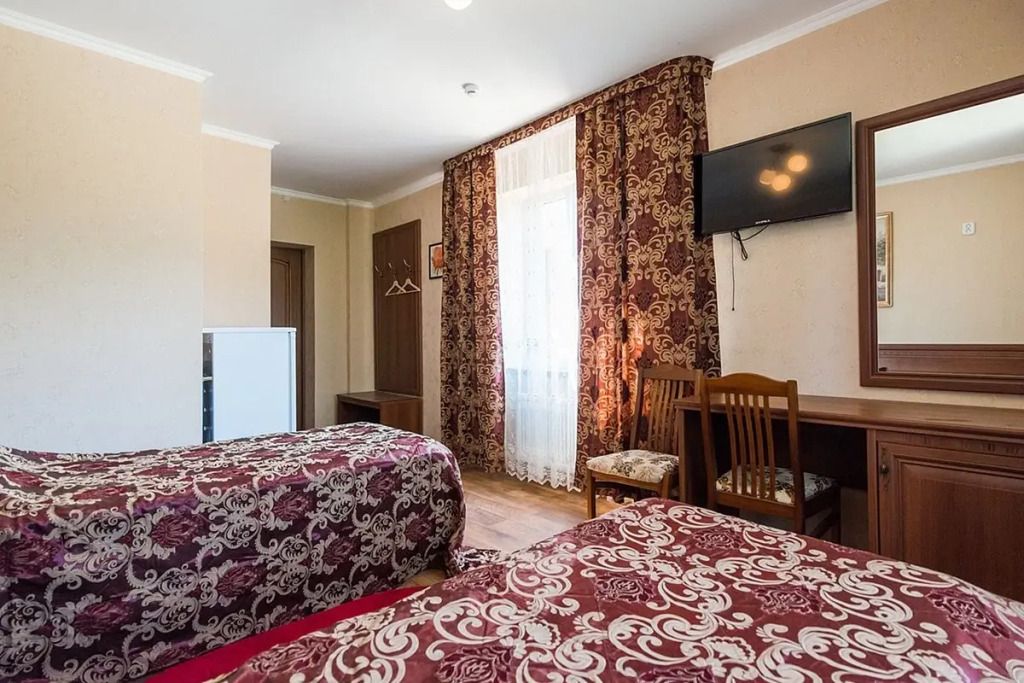 Номер нам попался небольшой, но очень аккуратный. Удобные кровати, чистое белье, работающий телевизор и холодильник. Никаких посторонних запахов не было. В номере убирали каждый день.