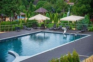 Открытый подогреваемый бассейн с роскошным видом на горный лесной пейзаж - изюминка туристического комплекса «Горная». Бассейн работает круглый год.