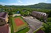 Ее корпуса расположены в старом фруктовом саду.