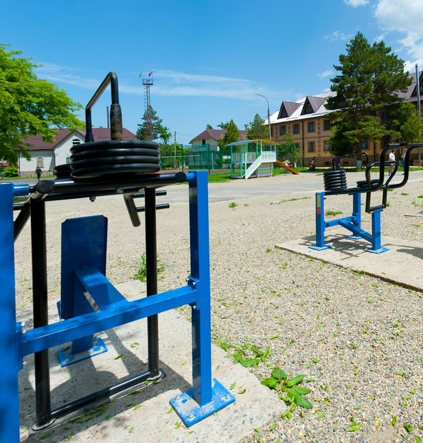 На территории установлены тренажеры для занятий силовыми упражнениями под открытым небом, а также рядом с корпусами расположена большая спортивная площадка с покрытием. Гости турбазы могут поиграть с друзьями или с семьей в волейбол или футбол.