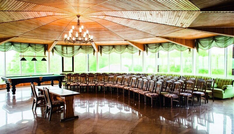Конференц-зал отеля "Горное Настроение" расположен на самом высоком этаже корпуса Сибирь. И уникальность зала в том, что он круглый, а по всему его диаметру открывается великолепный вид на горы, благодаря панорамным окнам. Зал вмещает в себя до 90 человек, здесь можно проводить любые обучающие и деловые мероприятия - семинары, тренинги, конференции, круглые столы и т.д. Зал оснащен всей необходимой аппаратурой - видеопроектором, экраном, микрофоном, звукоусилительной аппаратурой.