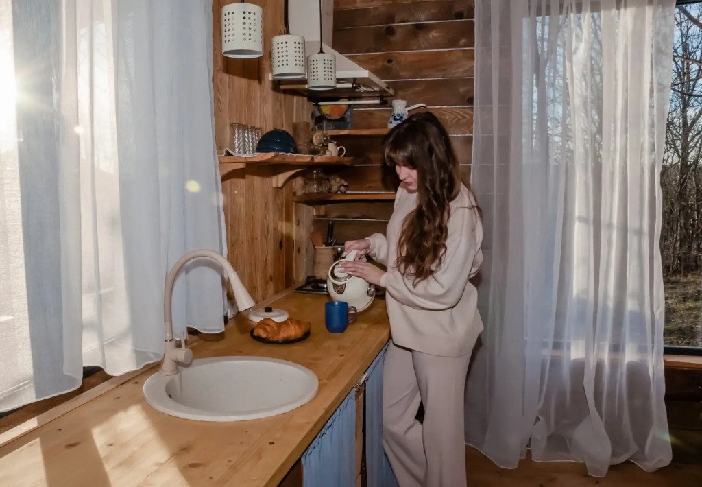 Гостей ждут: оборудованная кухня с техникой и посудой, спальня с ортопедическим матрасом, территория с мангалом, кострищем и дровами, Wi-Fi, горячая вода, необходимые расходники.