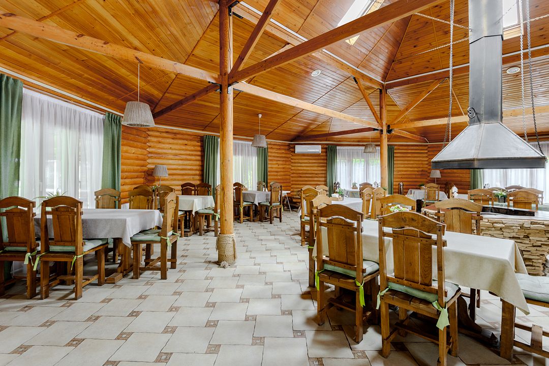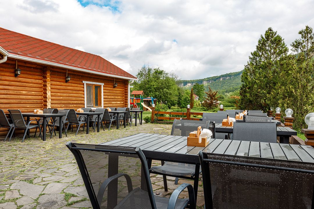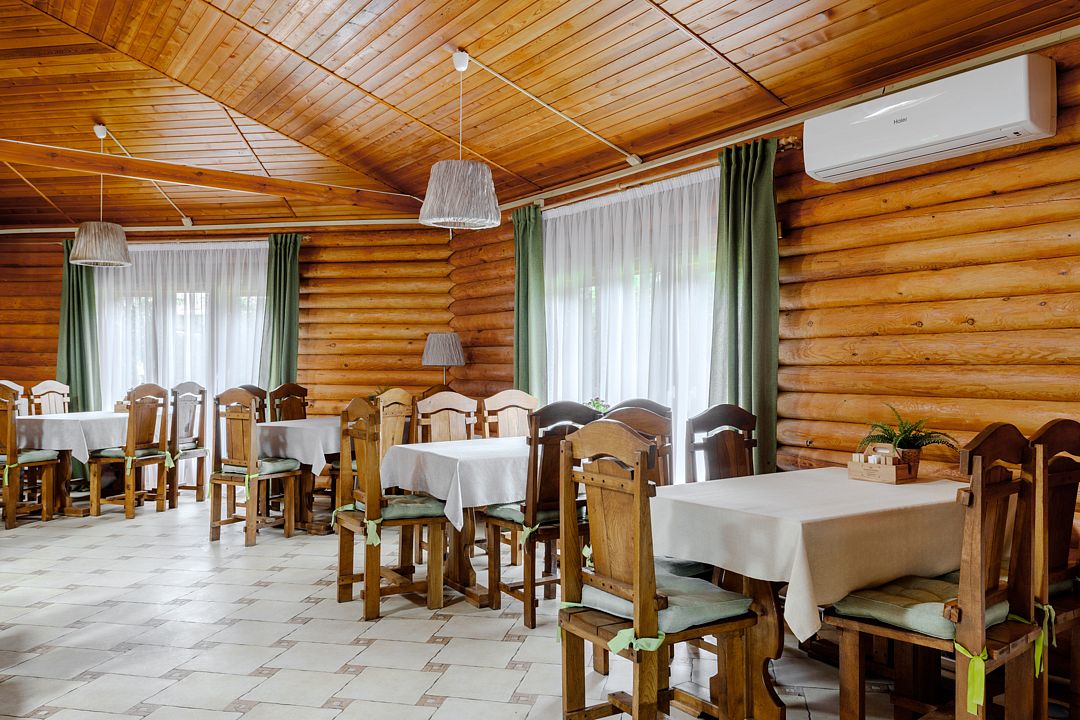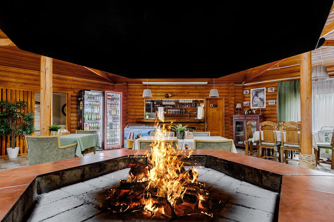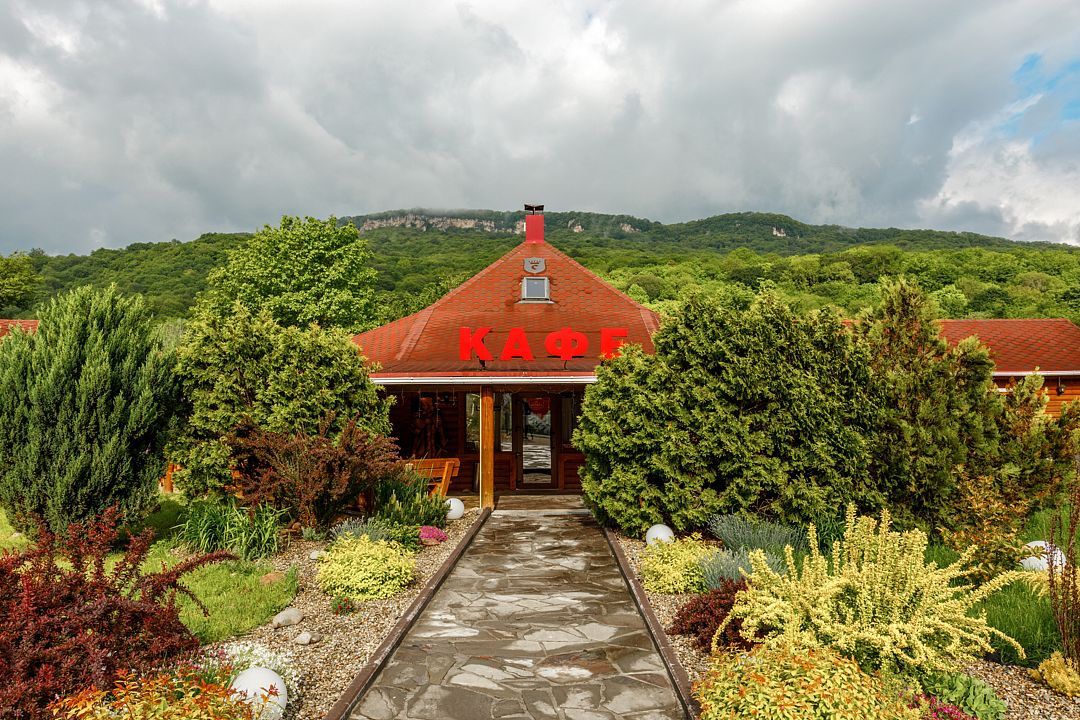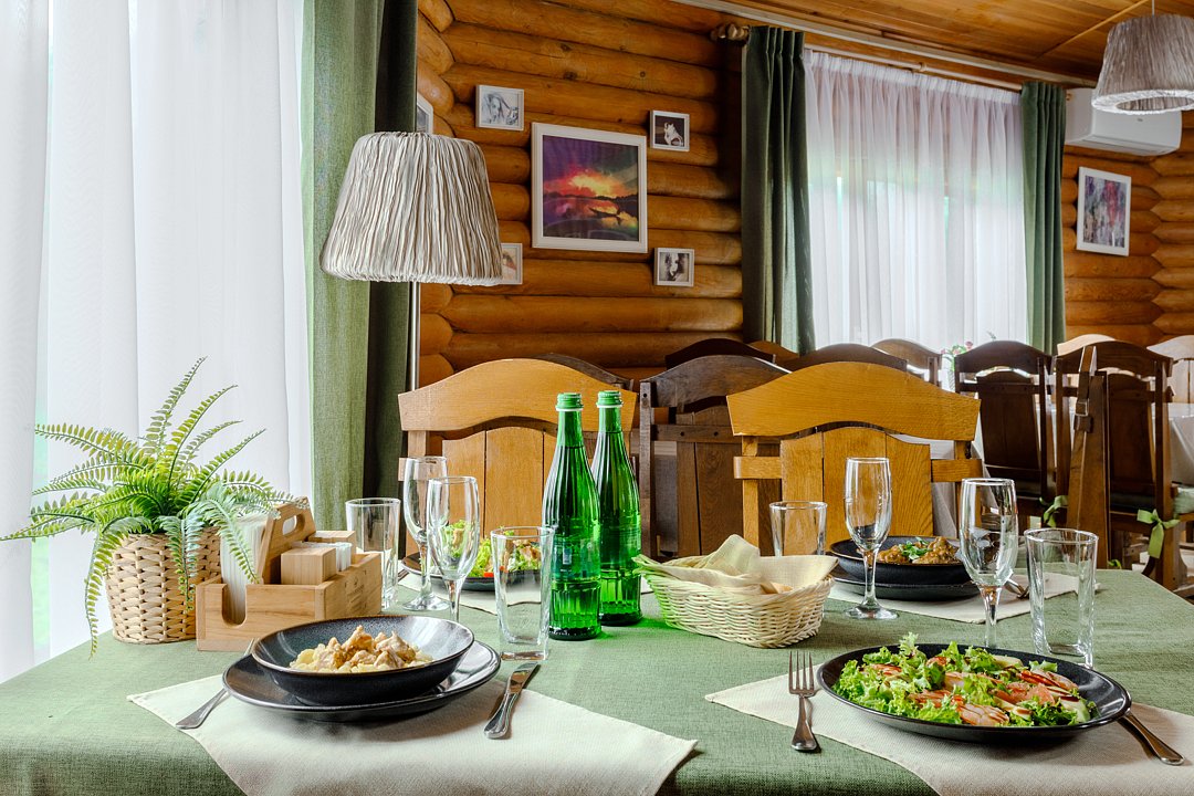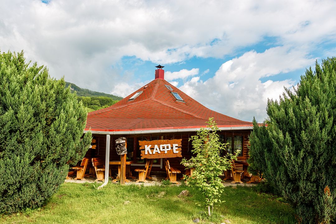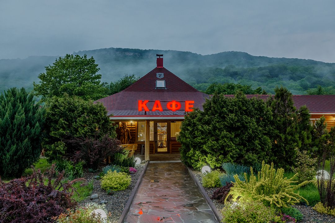 На территории комплекса работает кафе, оборудована барбекю-зона с мангалом, также в распоряжении гостей открытый бассейн, настоящая русская баня, где можно расслабиться после активного дня. Для автовладельцев организована охраняемая стоянка, а для детей предусмотрена игровая площадка.