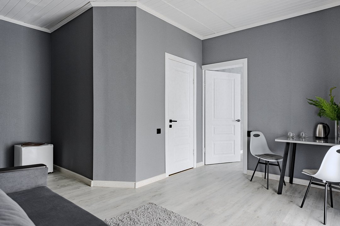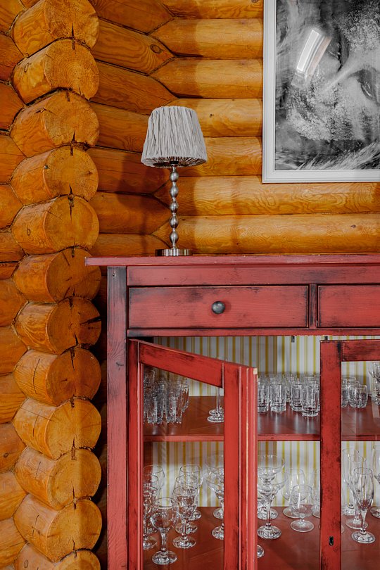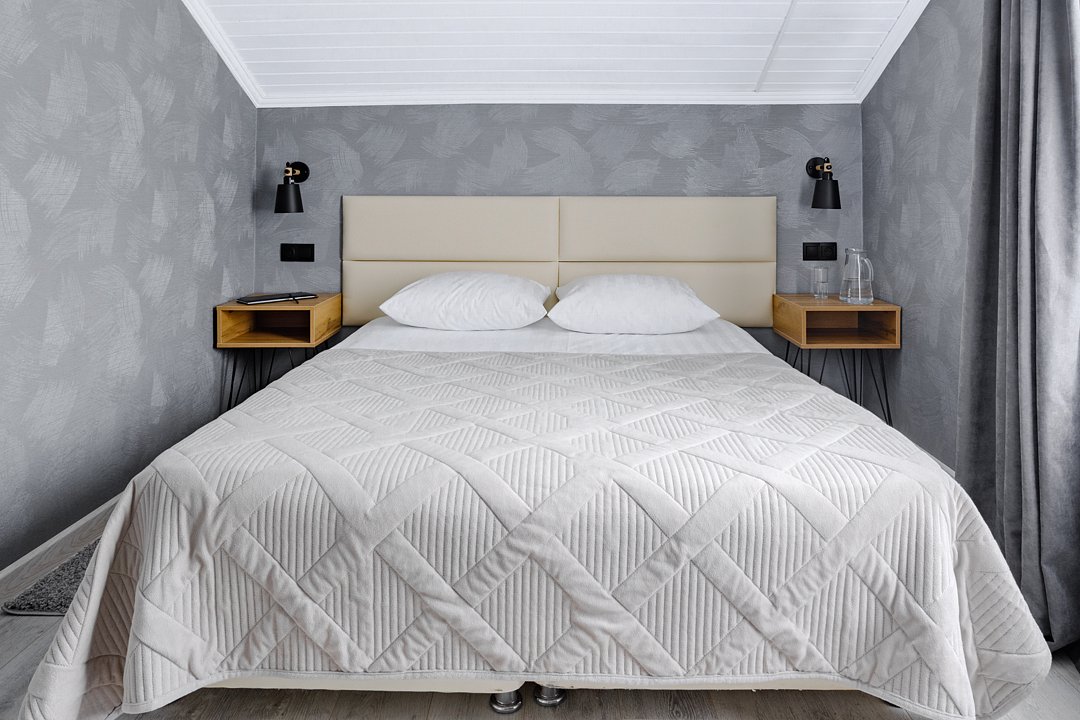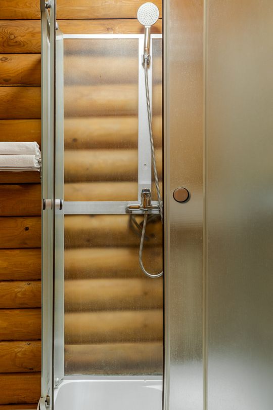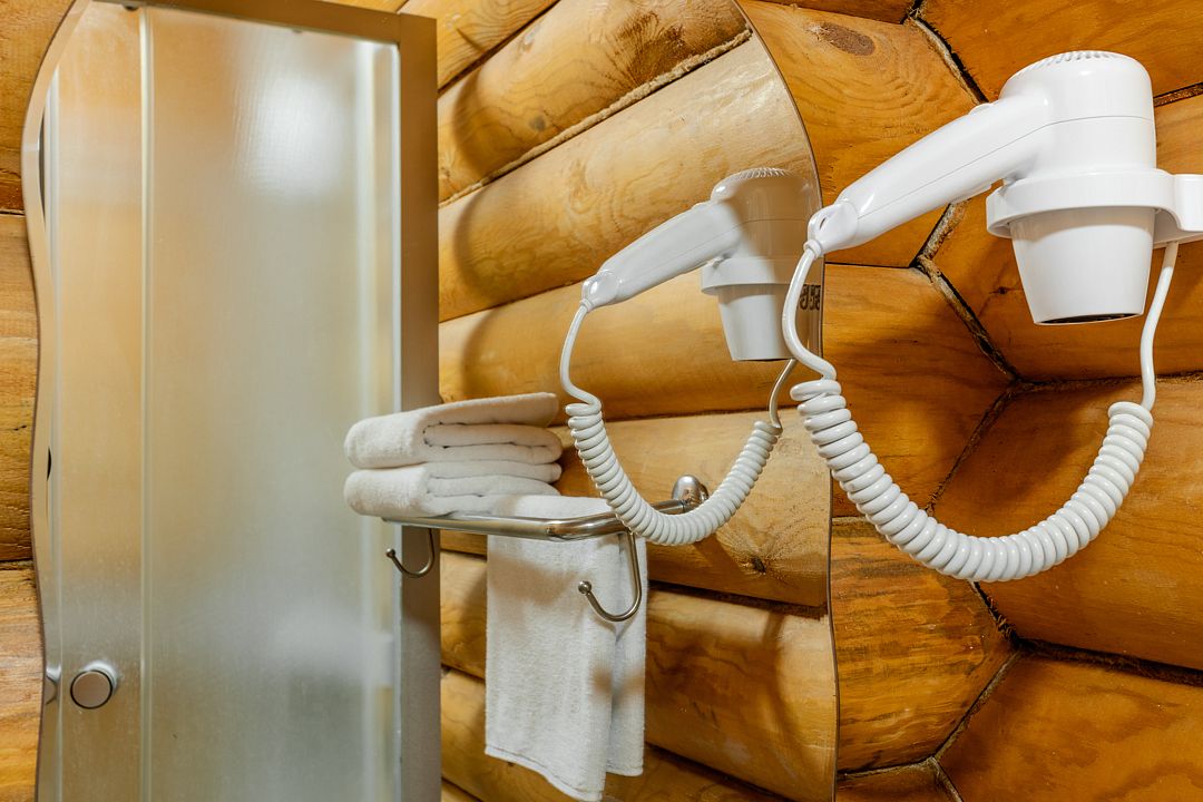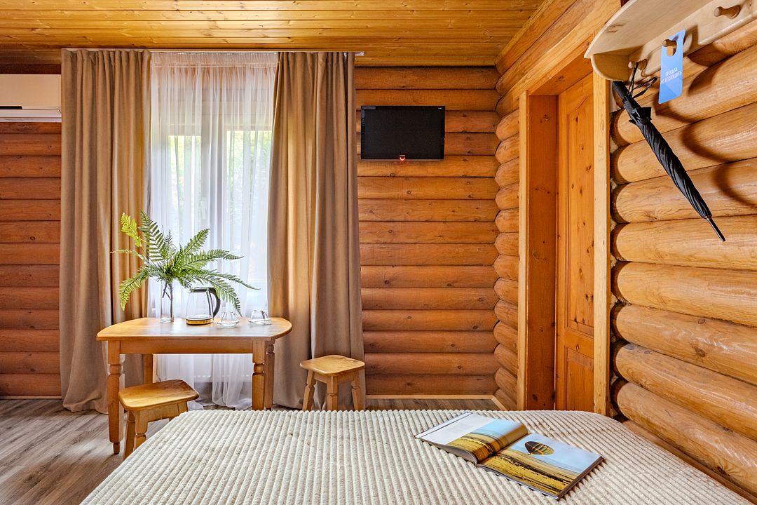 Стандартный двухместный номер с двуспальной кроватью в деревянном срубе с отдельным входом.