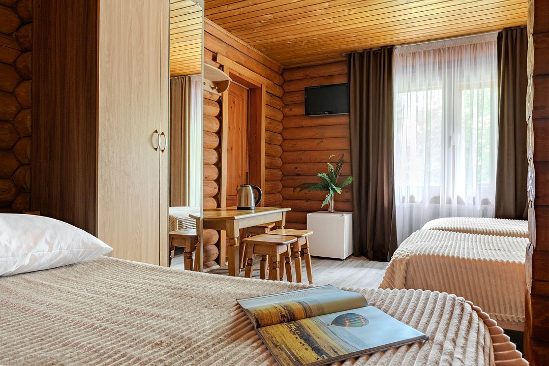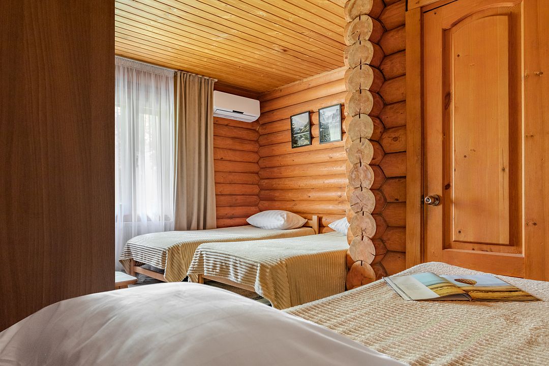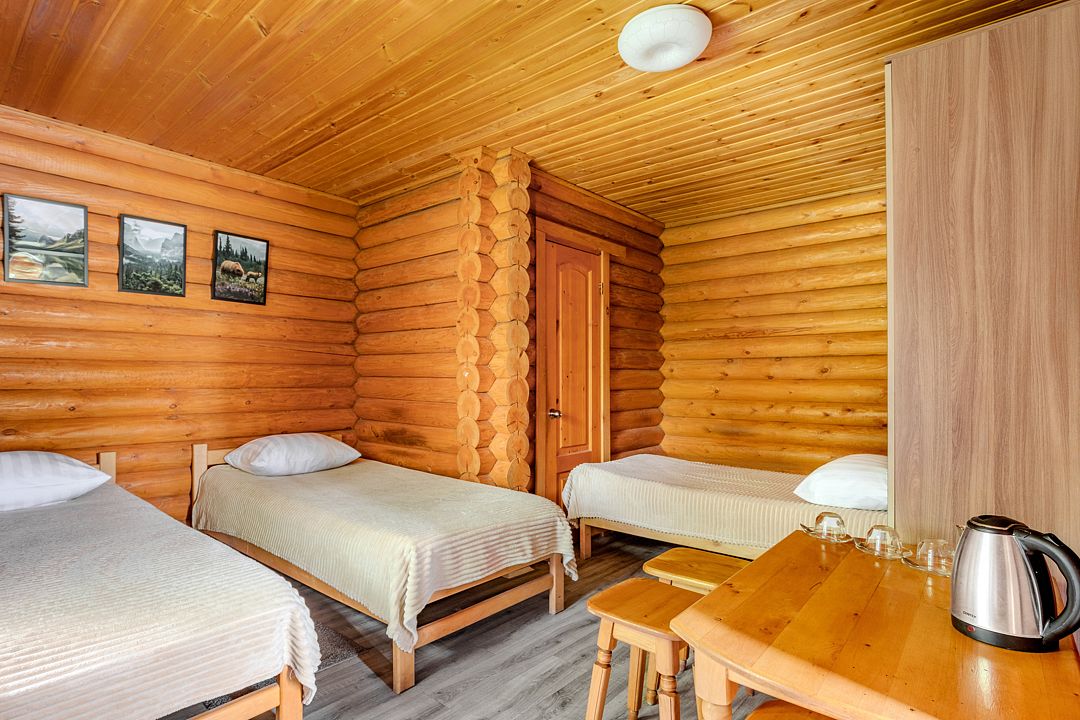 Стандартный 3-хместный номер с 3 односпальными кроватями в деревянном срубе с отдельным входом.