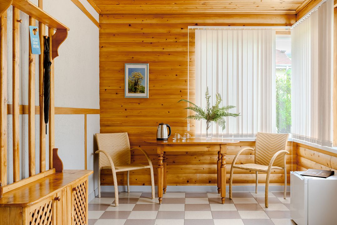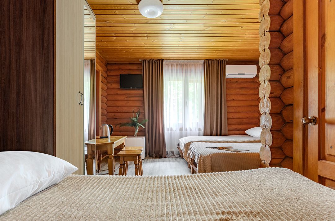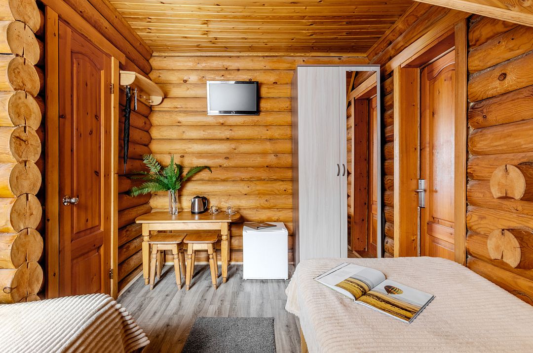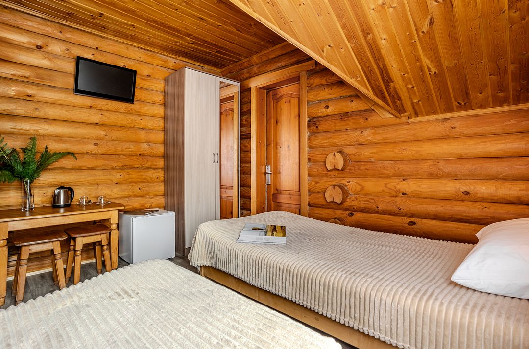 Стандартный двухместный номер с 2-мя раздельными кроватями в деревянном срубе с отдельным входом.