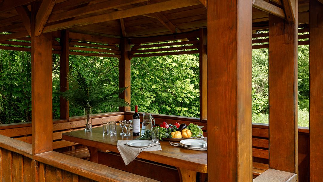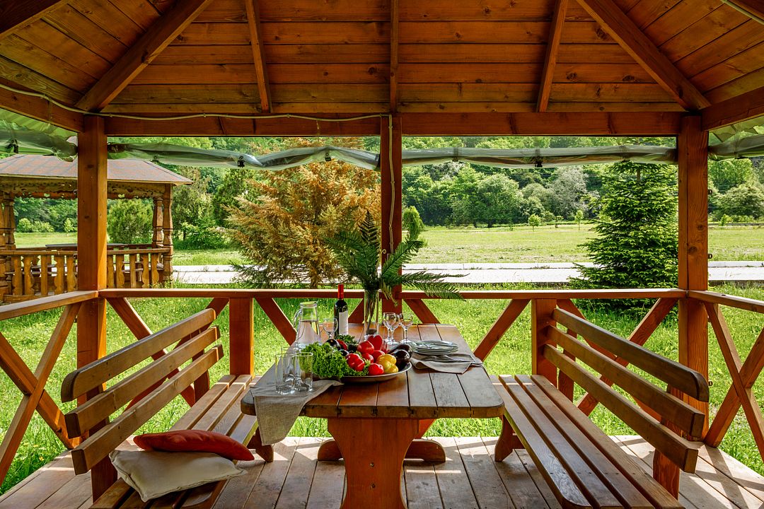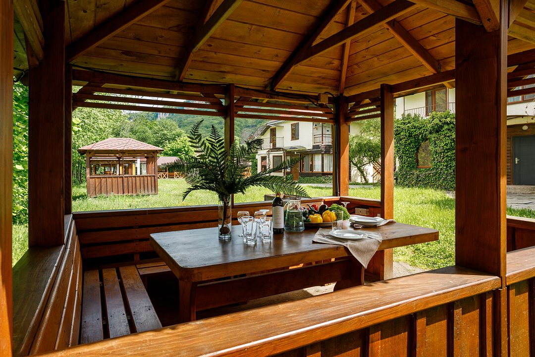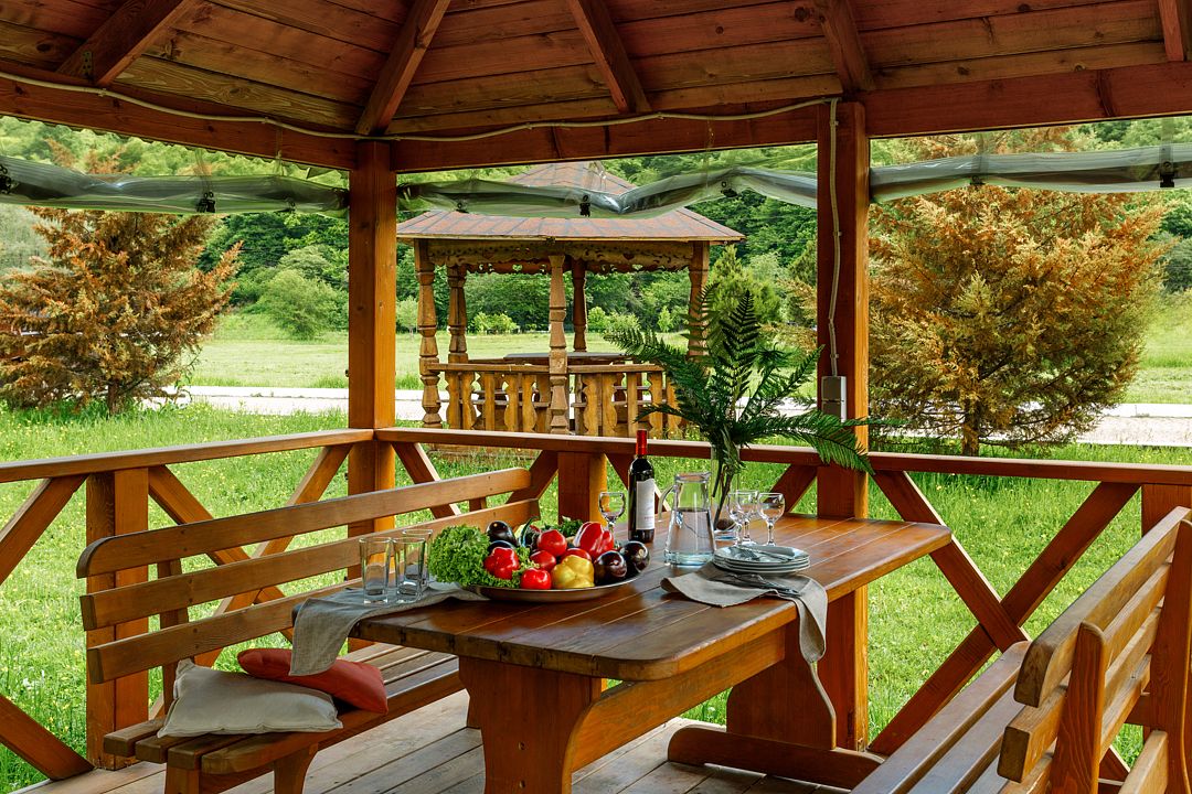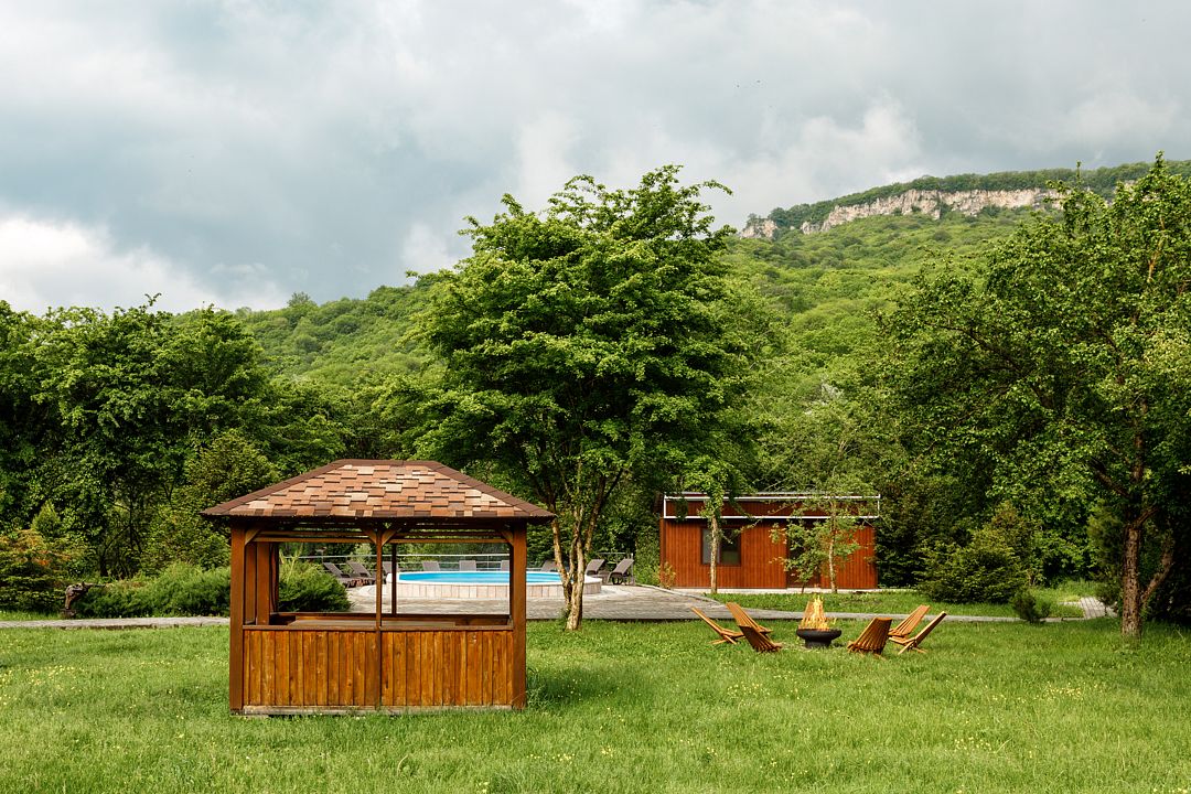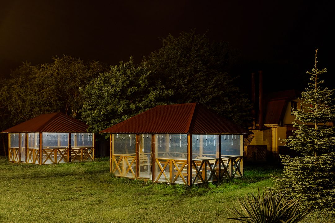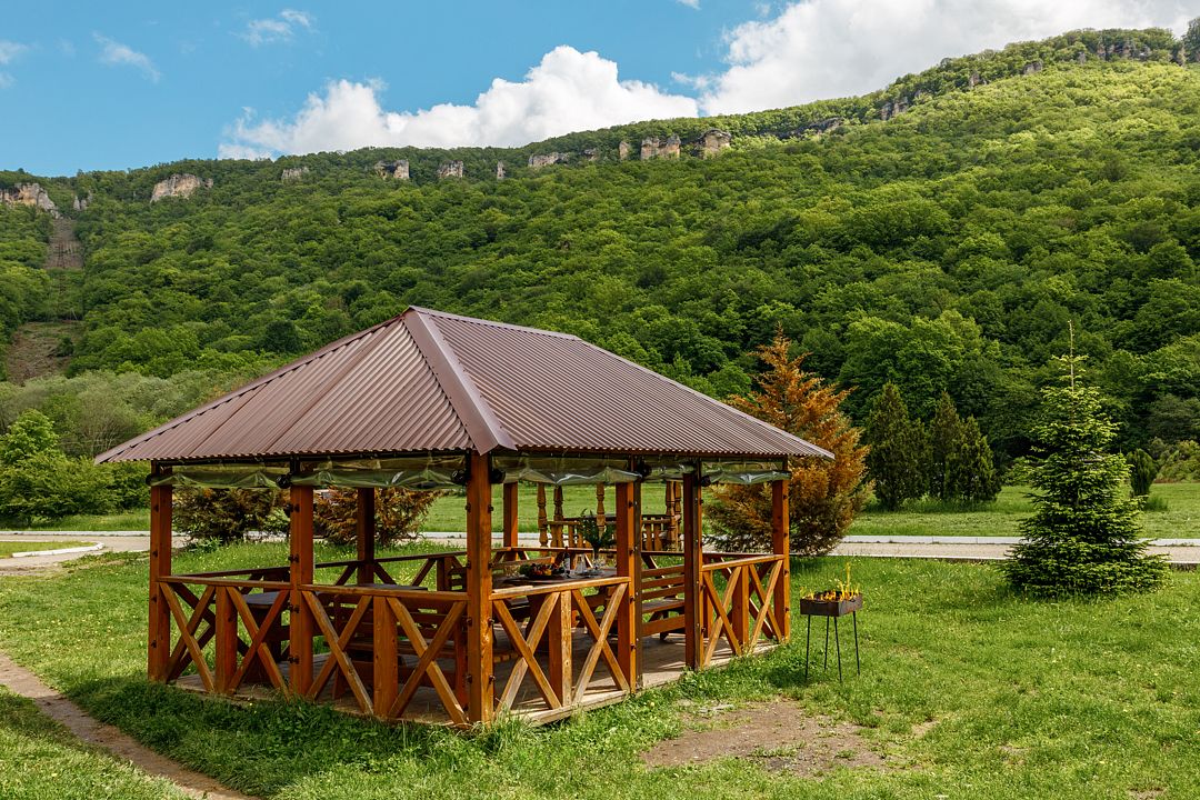 Проживающим в комплексе гостям предоставляется барбекю-принадлежности, беседки и охраняемая парковка.