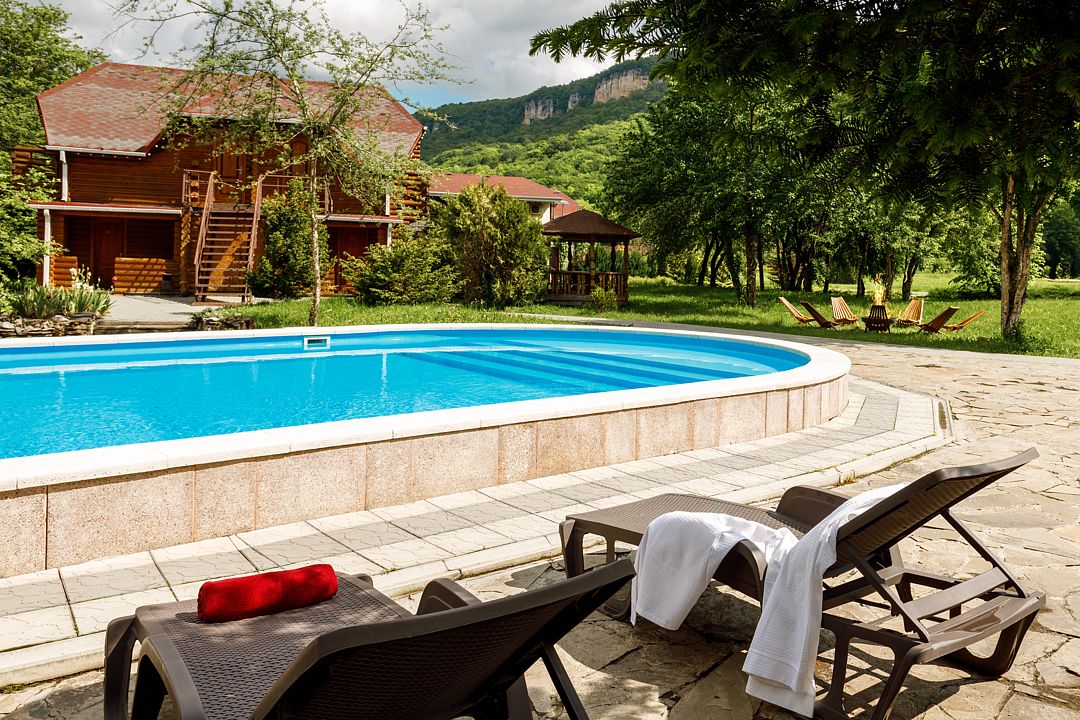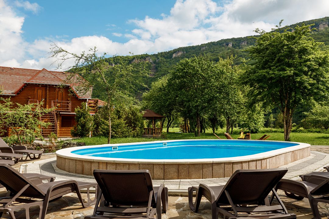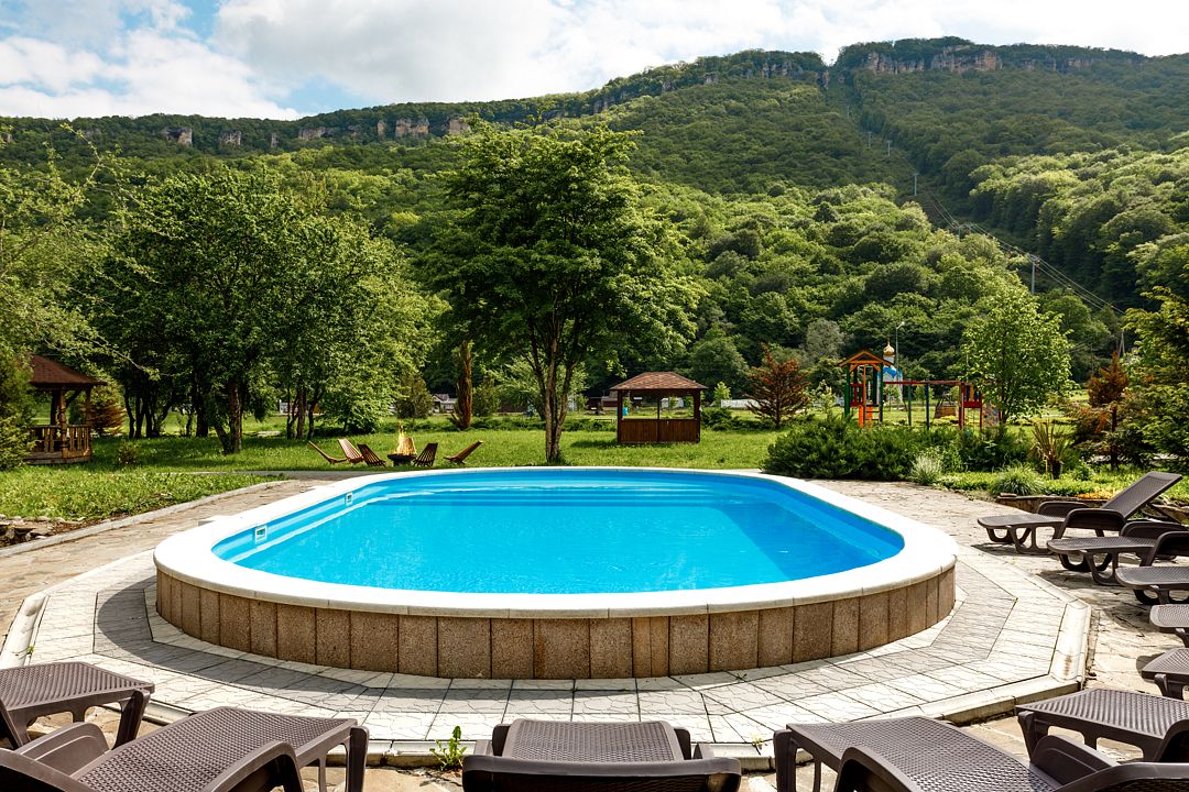 Летний бассейн с пресной водой оборудован для гостей на территории отеля. Пользование входит в стоимость.
