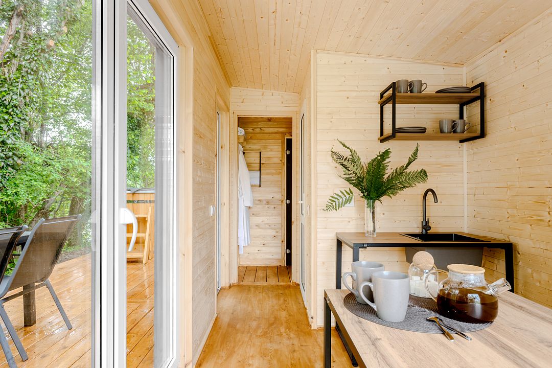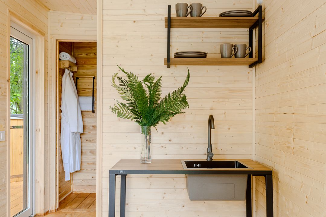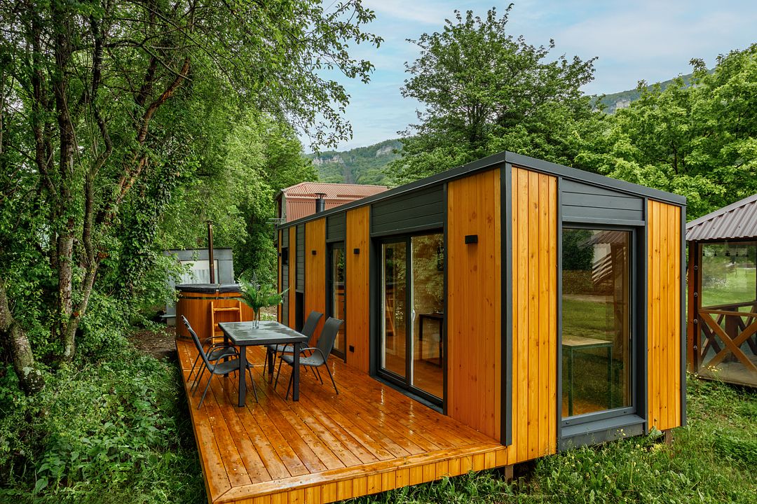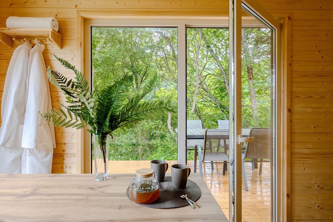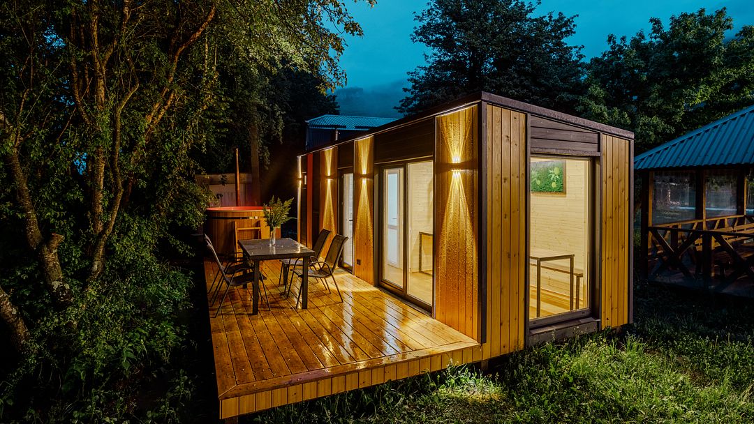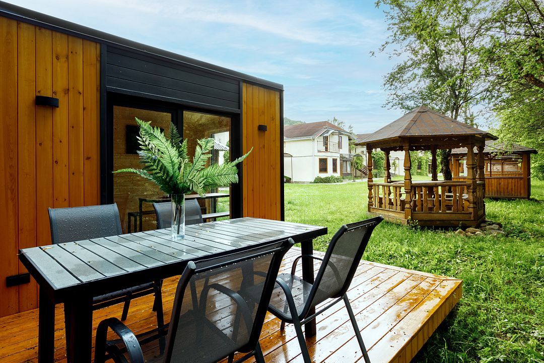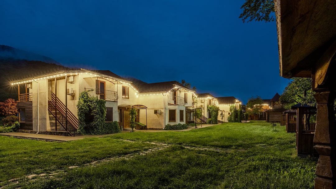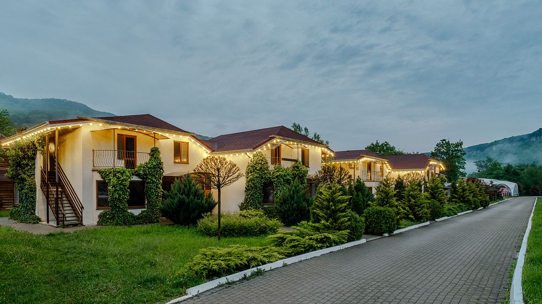 На территории комплекса расположено несколько двухэтажных домов, которые включают в себя 25 отапливаемых однокомнатных и двухкомнатных номеров. Все номера оснащены санузлом и укомплектованы бытовой техникой: есть кондиционер, электрочайник, плазменный телевизор, мини-холодильник, фен.