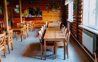 Базой отдыха предлагаются к заселению 19 номеров в двухэтажных домах-срубах, из них: для двух человек – 8 номеров с необходимыми удобствами в каждом; для трех – 7 и для четырех – 4 с общими удобствами на этаже. Есть кухонное помещение для самостоятельного кулинарного творчества.