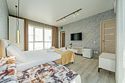 телевизор, Wi-Fi, холодильник, фен, банные полотенца, двуспальная кровать, диван, тумбы, шкаф для одежды, барная стойка, сейф, раковина, душ, две ванные комнаты, туалет, гостиничная парфюмерия, вид на бассейнВ гостиничном номере