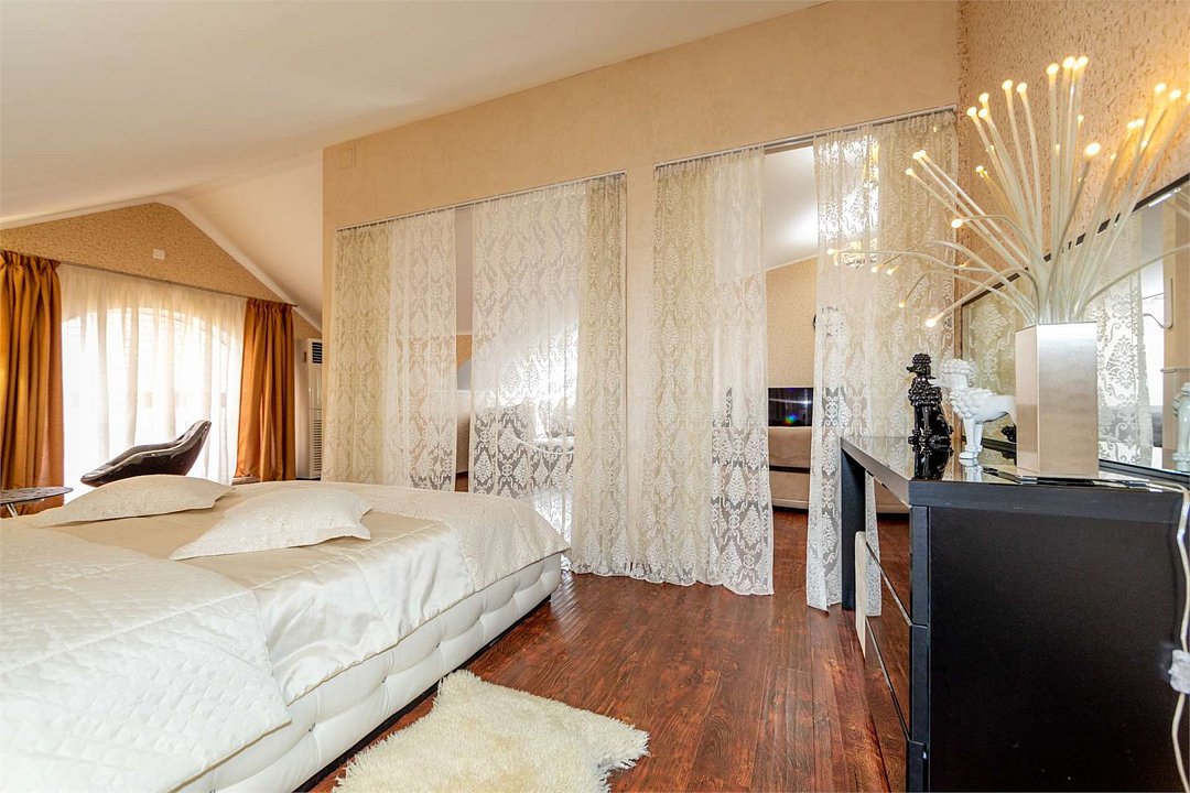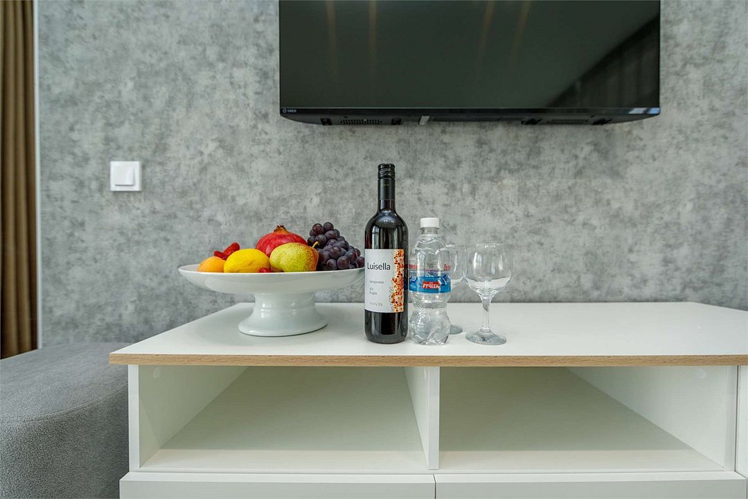 два телевизора, Wi-Fi, кондиционер, светильник, фен, ванна, гидромассажный душ, биде, халаты, банные полотенца, тапочки, косметические средства, двуспальная кровать, кресла, тумбы, стулья, шкаф для одежды, журнальный столик, письменный стол, барная стойка, зеркало, унитаз, раковина, мягкая мебель, обеденная зона, гостиная зона, кресло, кухонная посуда, сплит-система, раскладной диван, мини-холодильник, гостиничная парфюмерия, вид на горы, вешалки-плечики, прачечная (за дополнительную плату)В гостиничном номере