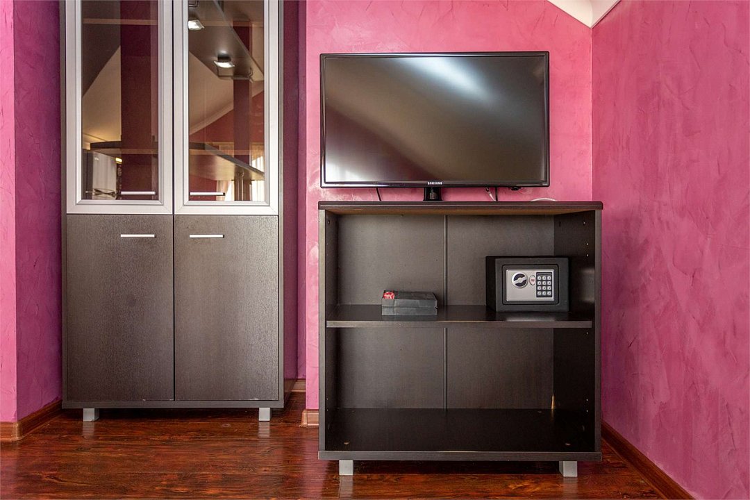 телевизор, Wi-Fi, интернет, кондиционер, фен, ванна, банные полотенца, двуспальная кровать, вешалки, журнальный столик, сейф, раковина, стул, туалетный столик, туалетные средства, туалет, раскладной диван, мини-холодильник, шкаф-купе, гостиничная парфюмерияВ гостиничном номере