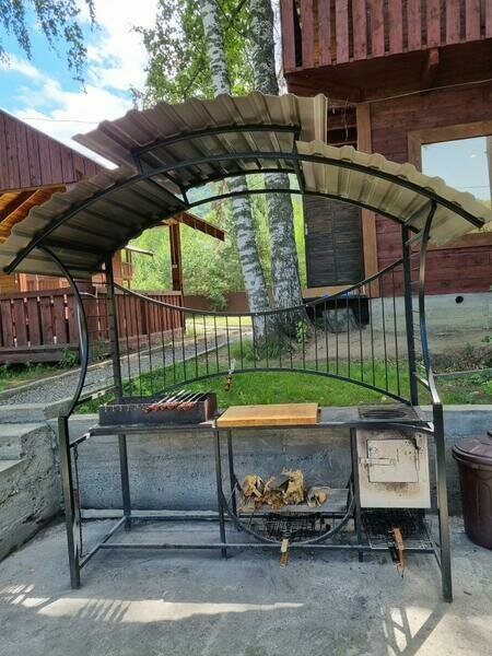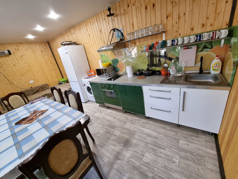 Дополнительные постройки - баня и кухня. Возможность воспользоваться кухней есть в любое время. Достаточно большой набор функционала, плита - электрическая, холодильник, мойка, сушка, диванчик и большой стол, за которым можно в прохладное время года принимать пищу. - но при этом ограниченный набор посуды (но думаю, со временем, собственники устранят это неудобство. Банный комплекс - можно использовать по согласованию с собственником. Парковка для автомобилей гостей находится рядом с территорией. Важное преимущество - собственник принимает с питомцами, для меня это было важно, хоть у меня и молодой пес - но оон очень большой по габаритам, мы ни кого не стесняли места на базе предостаточно.
