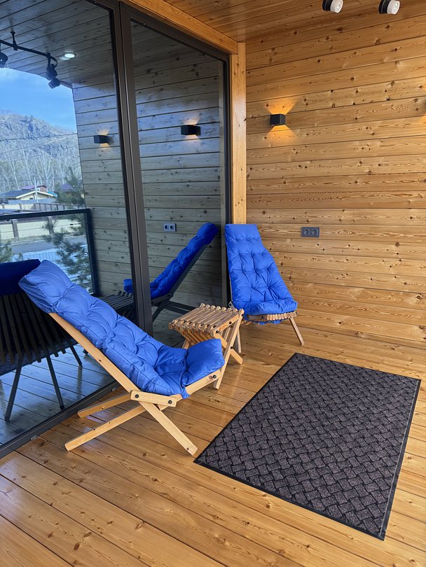 Номера расположены в отдельно стоящем особняке, балконы обращены в сторону гор и реки Катунь, оснащены столиком и парой кресел, есть возможность провести время с книгой на свежем воздухе., Если приехали с детьми, просите размещение в с балконом в сторону реки, так будет удобно наблюдать за детьми, когда будут находится на территории. При этом номера с балконом в сторону гор наиболее тихие и предполагают безмятежный отдых. В номерах есть дополнительная кровать для ребенка, при этом отсутствует полноценный столик, только пара этажерок для размещения гаджетов их хватит, но ту же сумку с вещами придется располагать на полу. Удобства (душевая и туалет ) одно помещение на 2 номера, Очень хорошо настроен душ, горячая вода в избытке, пространство туалетной комнаты - комфортное,