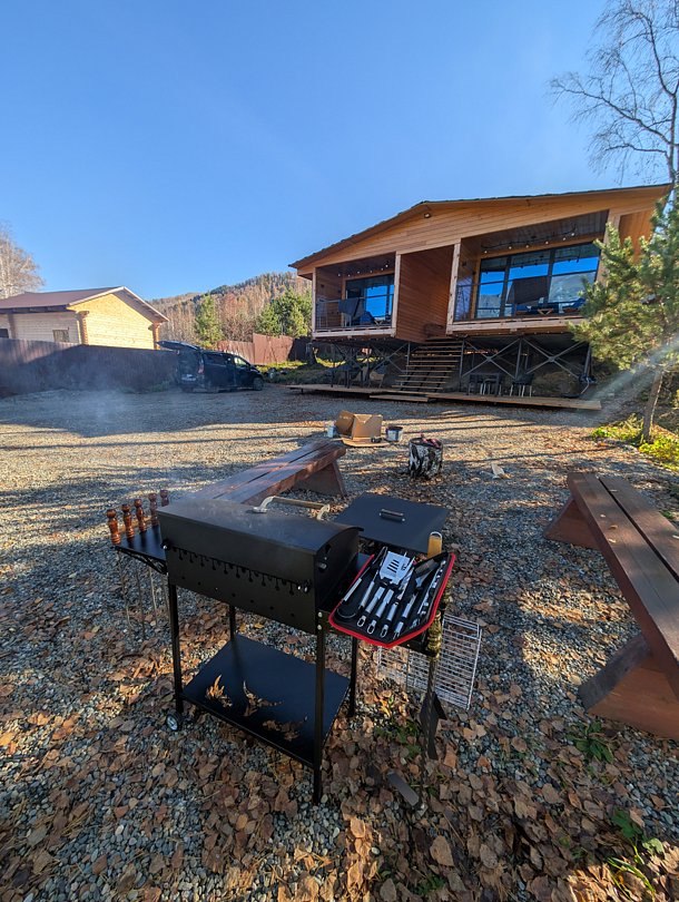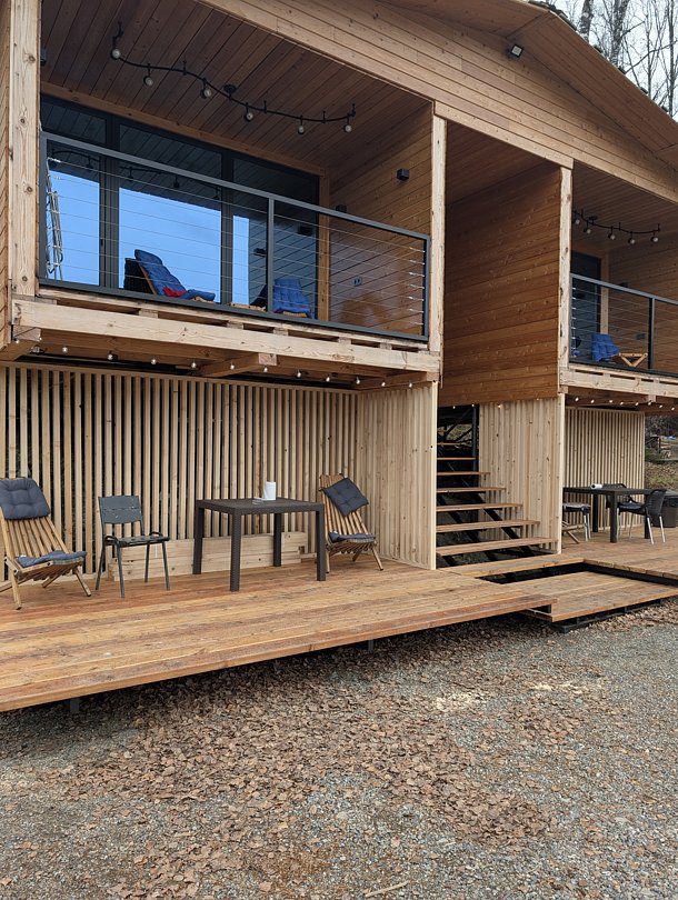 июль 2021 г.У каждого места есть светлая сторона, рекомендуем.Совершенно новая база, Начала работать за 10 дней до нашего прибытия. Собственники достаточно много сил вложили в ее строительство и развитие. Есть лаунж с шезлонгами, Достаточно просторная поляна на которой можно провести время, поиграть с детьми, Но при этом отсутствуют зонты, Поскольку на Алтае очень активное солнце и температура достигает высоких значений, ребятишки да и Вы, можете пробыть в лаунж зоне короткое время. К рекреационной зоне можно смело отнести 2 большие беседки, каждая для большой компании, собственно существует еще зона барбекю, Есть небольшой фонтан, некий зачаток японского сада. Нужно сказать , что окончательное формирование структуры отеля еще не завершено и владельцы скорее всего продолжат строительство и обустройство базы.