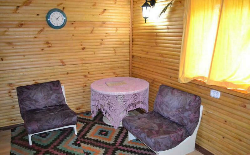 3 кровати (полуторные), шкаф, зеркало, тумбочка; туалет, умывальник в коттедже.