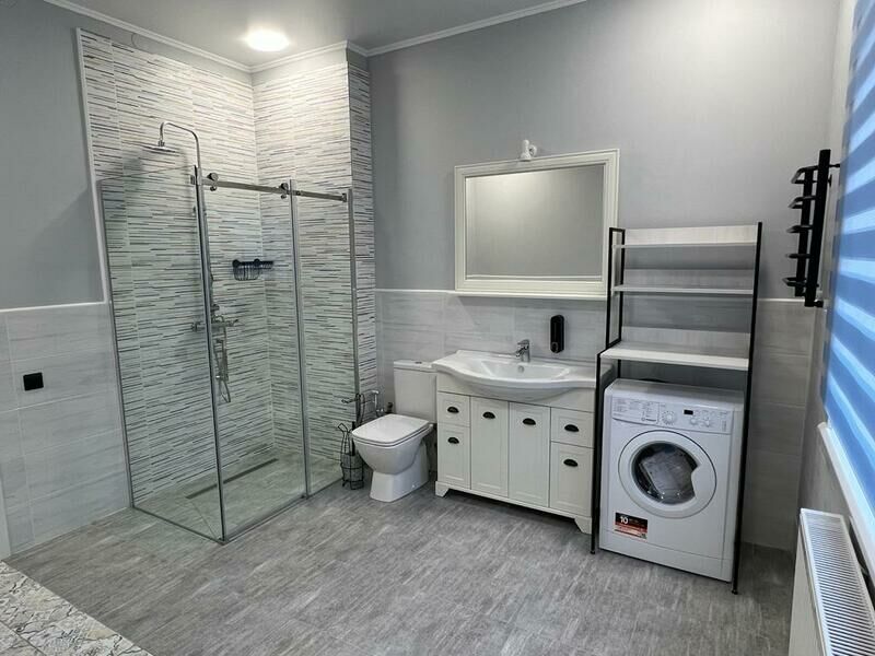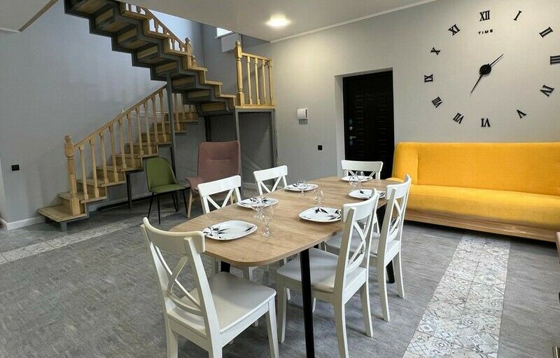 Гостевой дом представляет собой двухэтажный коттедж, оснащенный всем необходимым для комфортного и качественного размещения. В доме 5 уютных спальных комнат с двухместными кроватями, 3 туалета и 2 душевые, большой холл с кухней, оборудованной варочной панелью, духовкой, микроволновой печью. На территории предусмотрена мангальная зона с лавочками и качелей. Есть баня с летним уличным каркасным подогреваемым бассейном, установленным на террасе.