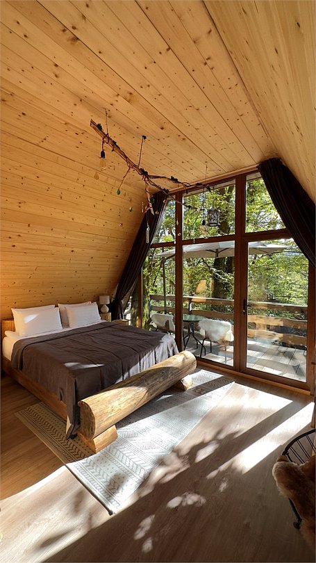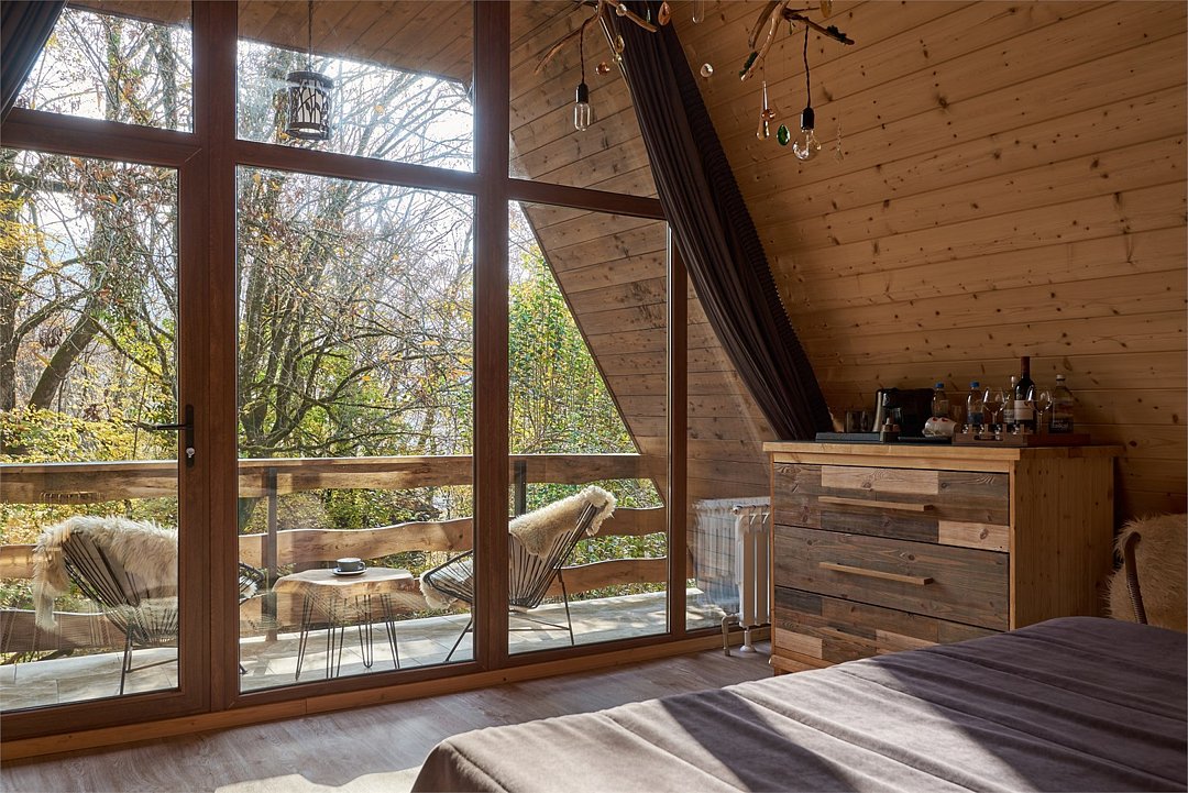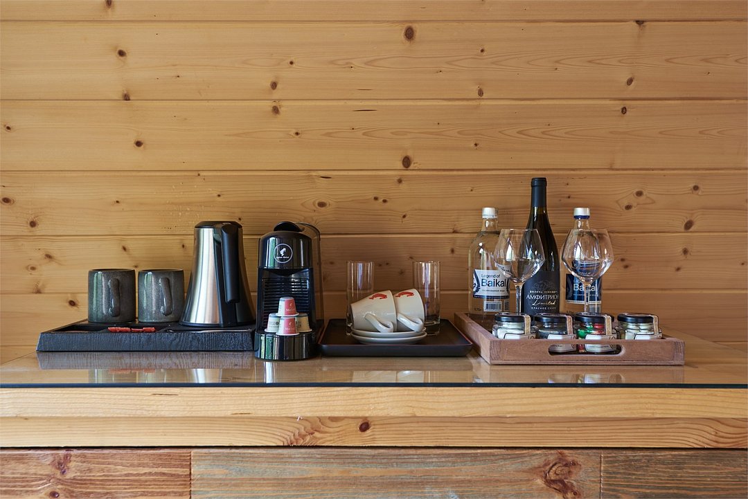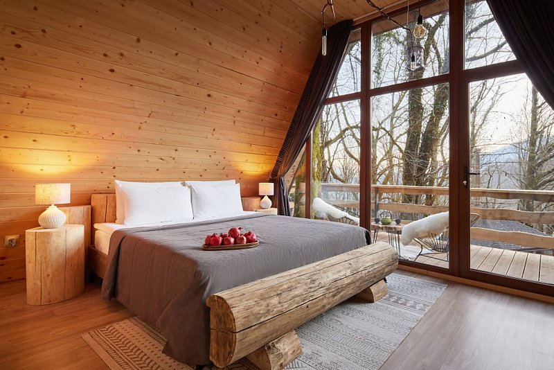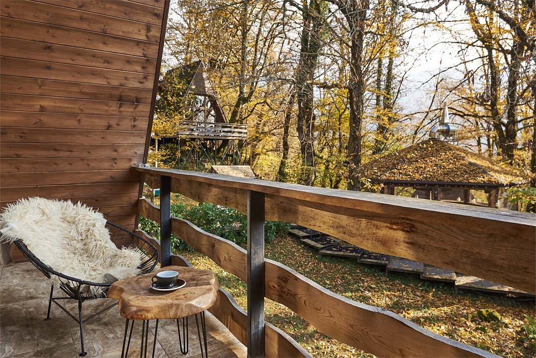Одноэтажный однокомнатный коттедж в эко-стиле идеально подходит для романтического времяпровождения на природе. Мебель и предметы интерьера выполнены из эко-материалов, а все ткани натуральные и приятные на ощупь. Комната оборудована двуспальной кроватью. Из комнаты имеется выход на балкон, с которого открывается вид на завораживающую природу Кавказского национального заповедника. Ванная комната укомплектована полотенцами, феном, весами и необходимыми косметическими принадлежностями (шампунь, кондиционер, гель для душа, мыло, косметический набор). Для Вашего комфорта в коттедже есть махровый халат и мягкие тапочки. В коттедже есть чайная станция и кофе-машина с кофейными капсулами от Julius Meinl и корзина искушений с выбором снеков премиального качества. Все лоджи имеют стабильный бесплатный Wi-Fi.Услуги и удобства