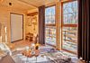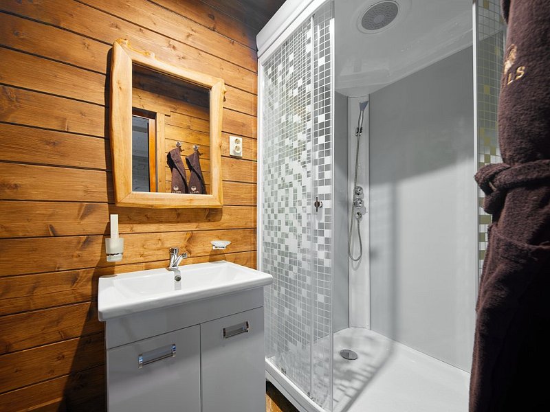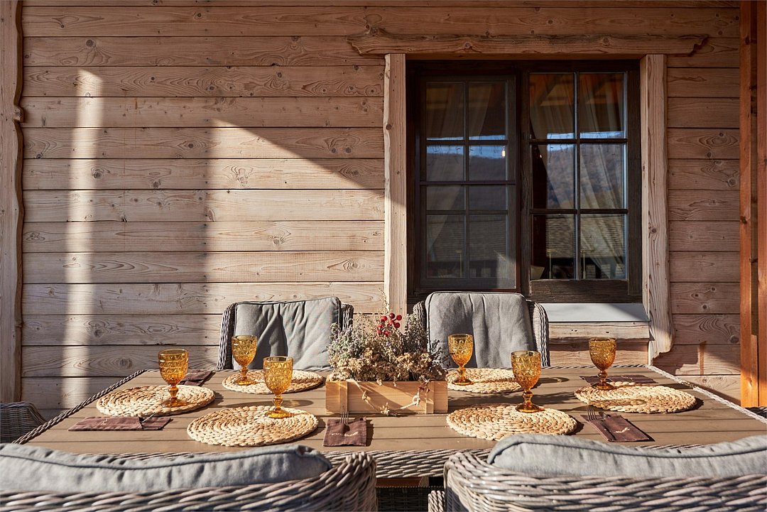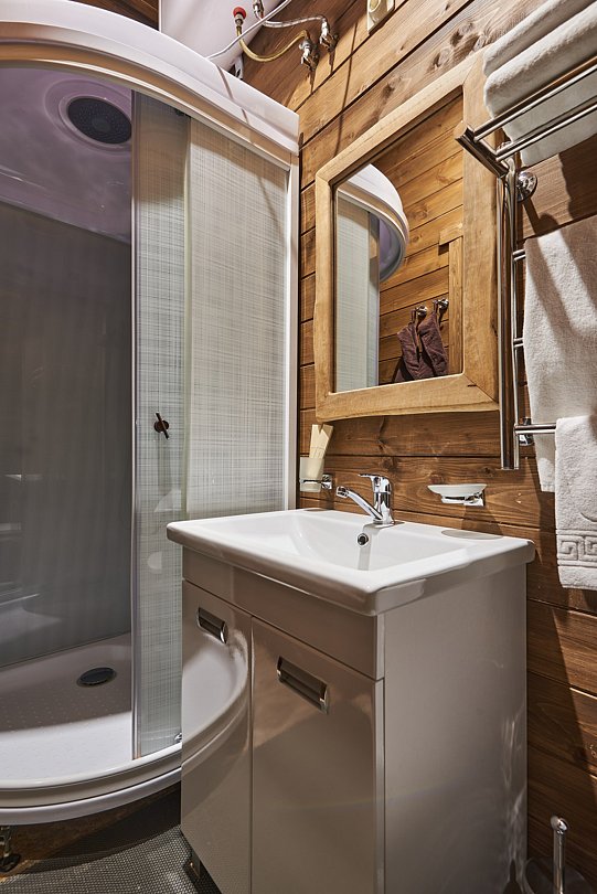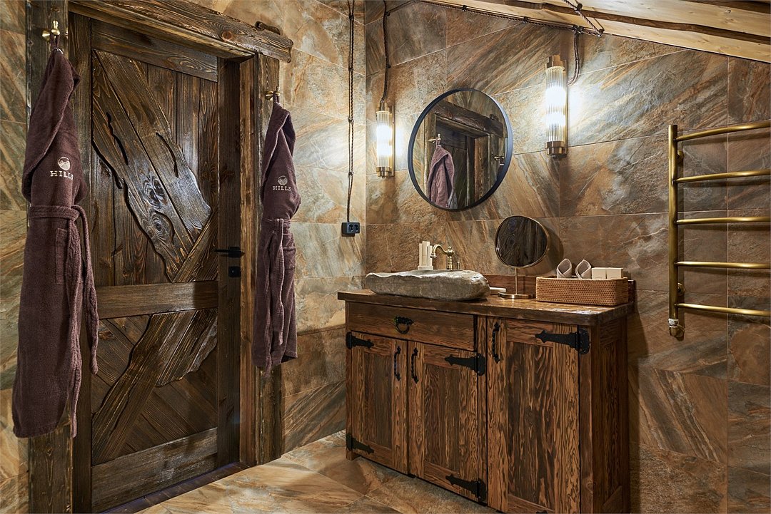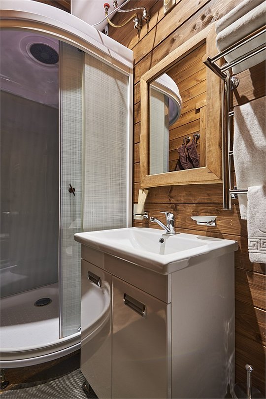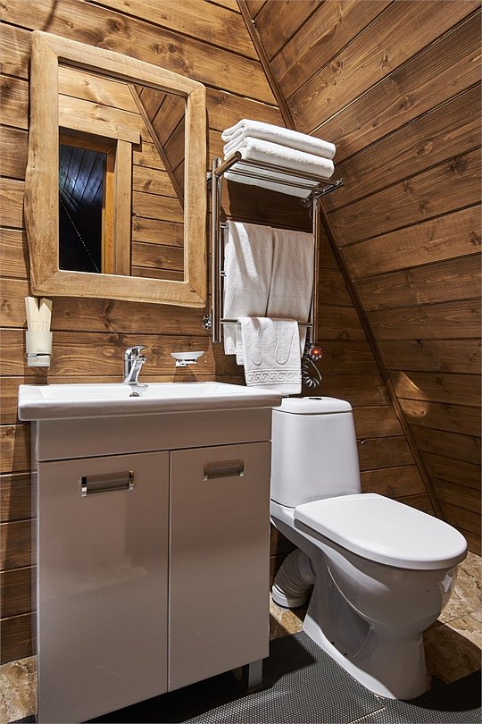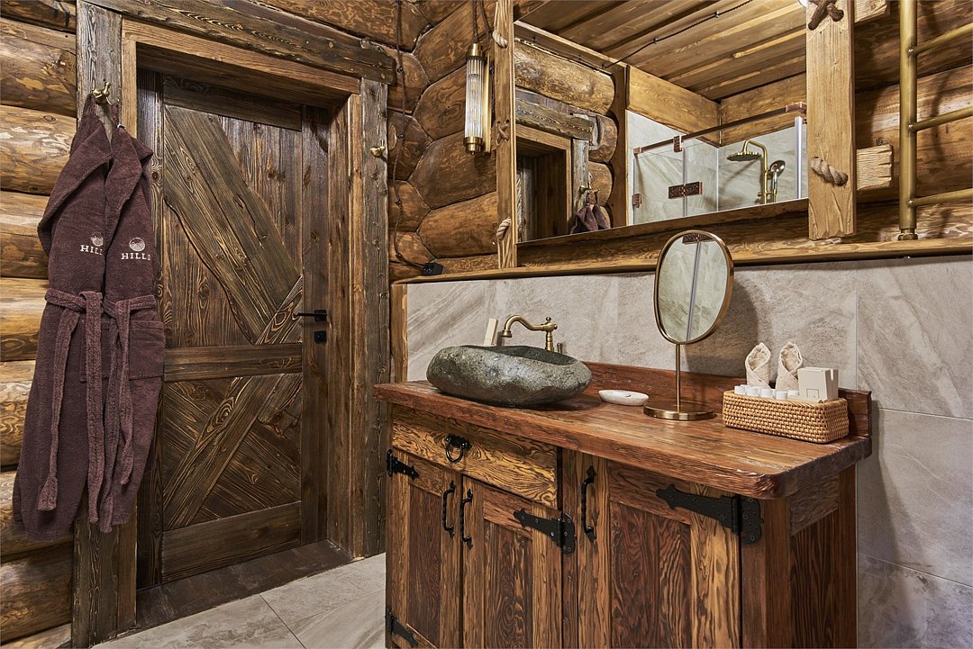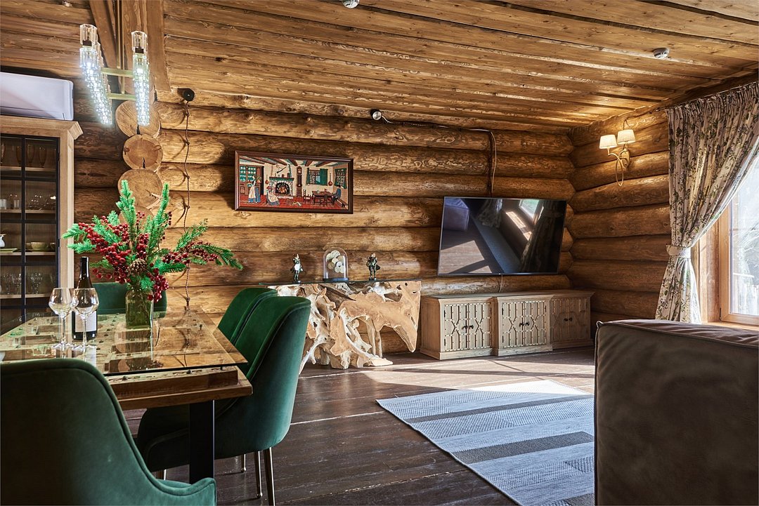 Уютное шале из натурального дерева идеально подходит для размещения 6 гостей. На первом этаже расположена просторная дизайнерская гостиная с камином, барной стойкой, уютной диванной зоной. Также на этаже расположена гостевая туалетная комната. На втором этаже расположены три превосходно оборудованные спальни и веранда с видом на горы и две ванные комнаты. Для удобства в каждой ванной комнате имеется душевая кабина, фен и косметические принадлежности: шампунь, кондиционер, гель для душа, мыло, косметический набор. Для Вашего комфорта для каждого гостя есть махровый халат и мягкие тапочки.Услуги и удобства