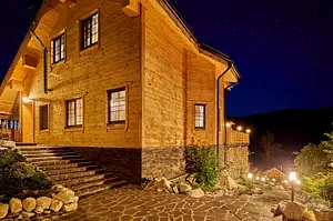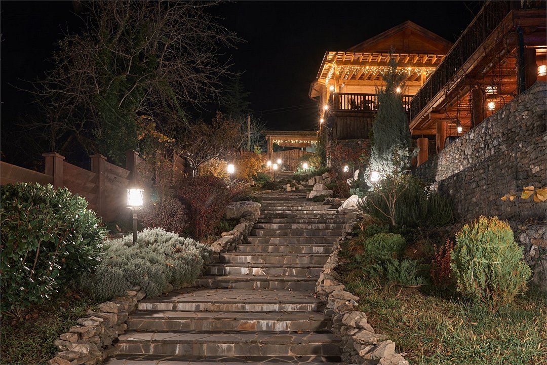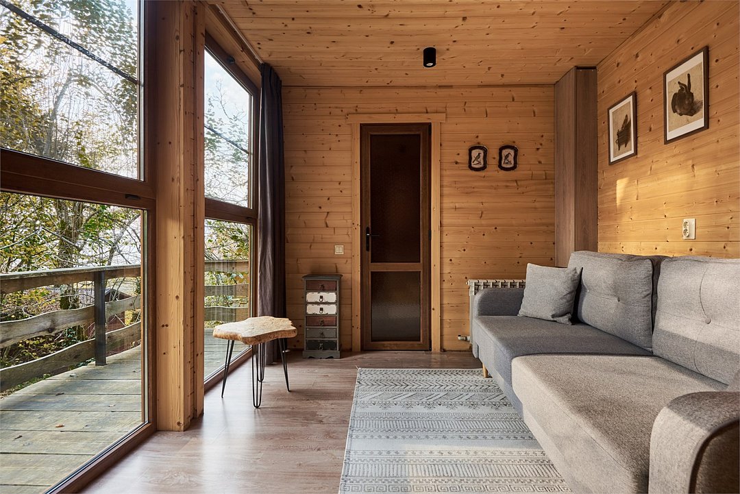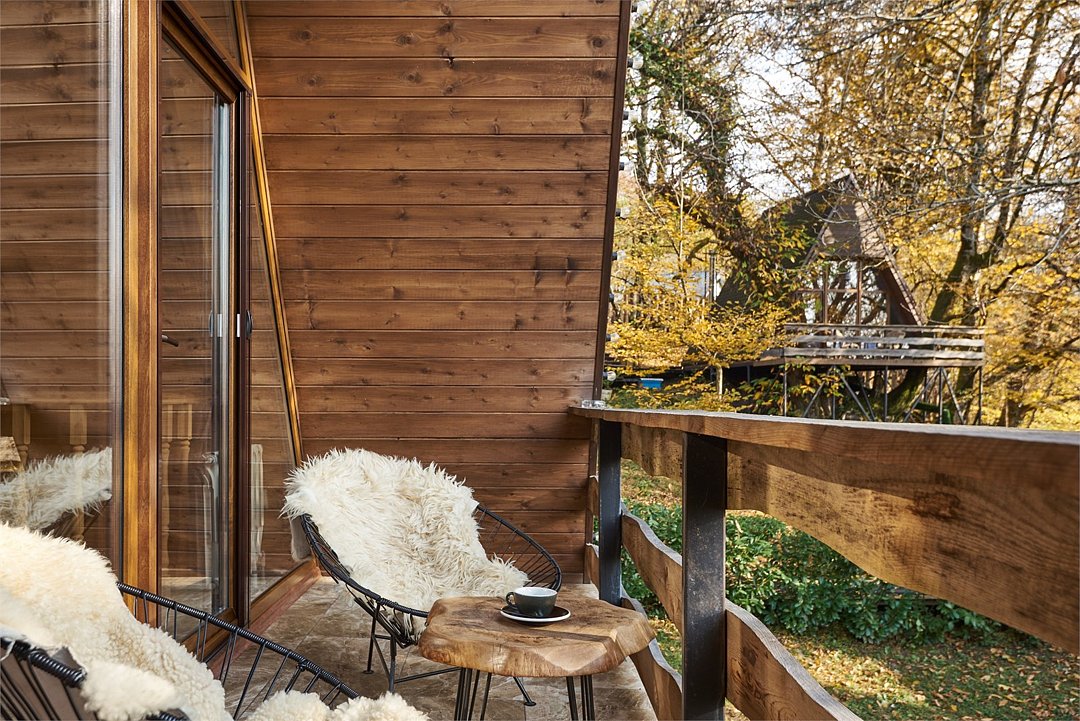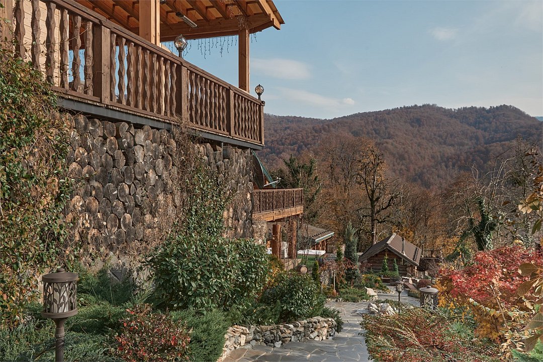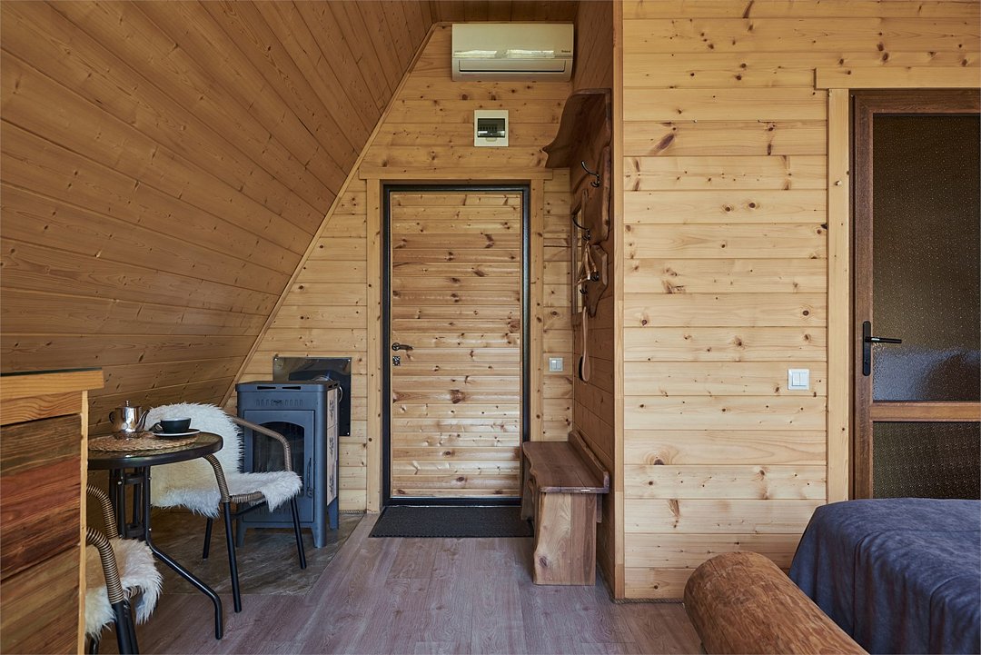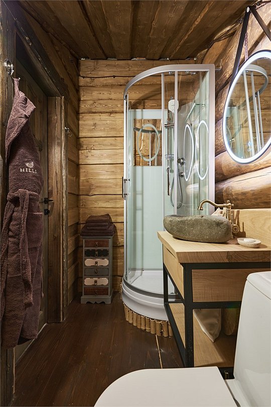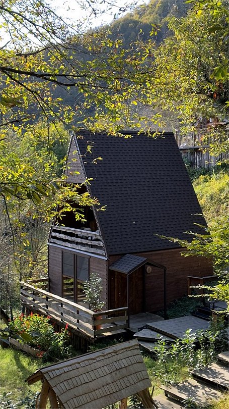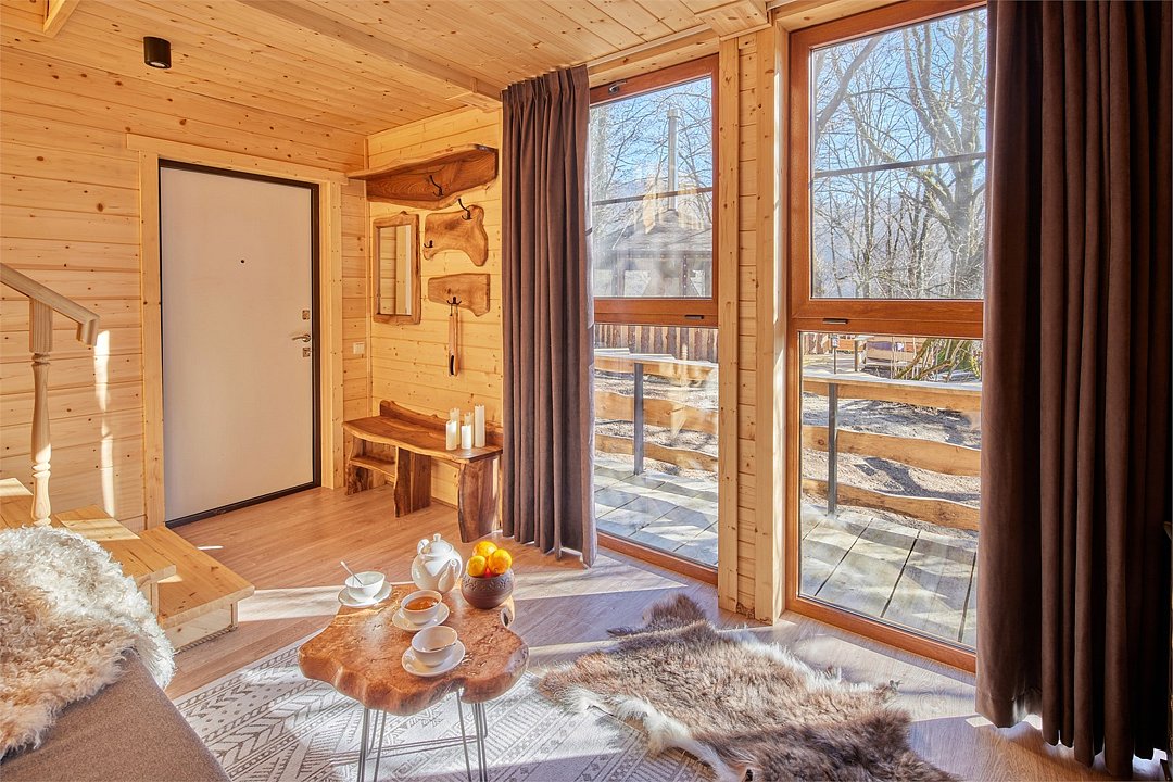 Двухэтажный коттедж в эко-стиле идеально подходит для романтического времяпровождения на природе. Мебель и предметы интерьера выполнены из эко-материалов, а все ткани натуральные и приятные на ощупь. На первом этаже расположена небольшая гостиная с диваном, который может быть использован как дополнительное спальное место для одного гостя. Ванная комната укомплектована полотенцами, феном, весами и необходимыми косметическими принадлежностями (шампунь, кондиционер, гель для душа, мыло, косметический набор). На втором этаже комната оборудована двуспальной кроватью. Из комнаты имеется выход на балкон, с которого открывается вид на завораживающую природу Кавказского национального заповедника. Для Вашего комфорта в коттедже есть махровый халат и мягкие тапочки. В коттедже есть чайная станция и кофе-машина с кофейными капсулами от Julius Meinl и корзина искушений с выбором снеков премиального качества. Все лоджи имеют стабильный бесплатный Wi-Fi. Это настоящее искушение для любителей первоклассного отдыха в горах!Услуги и удобства