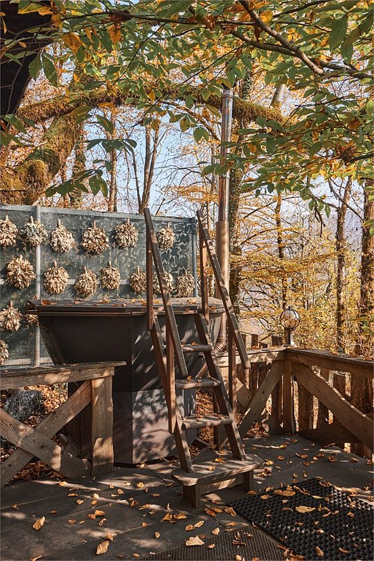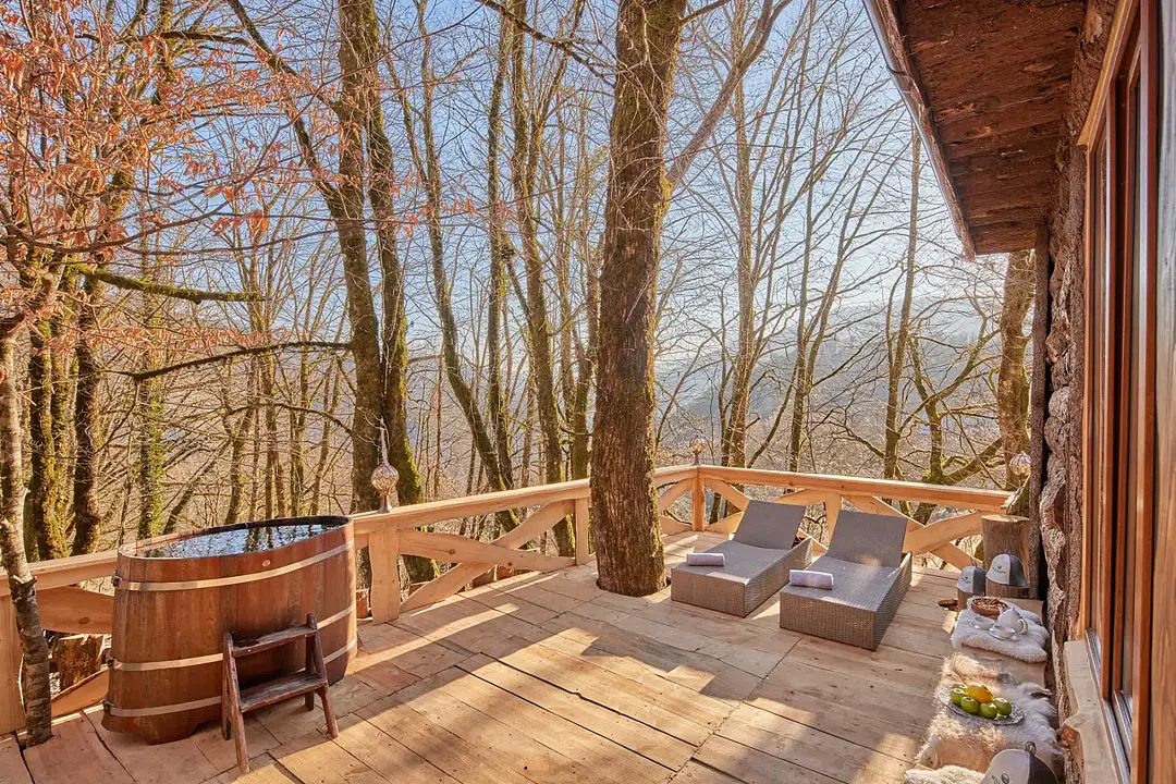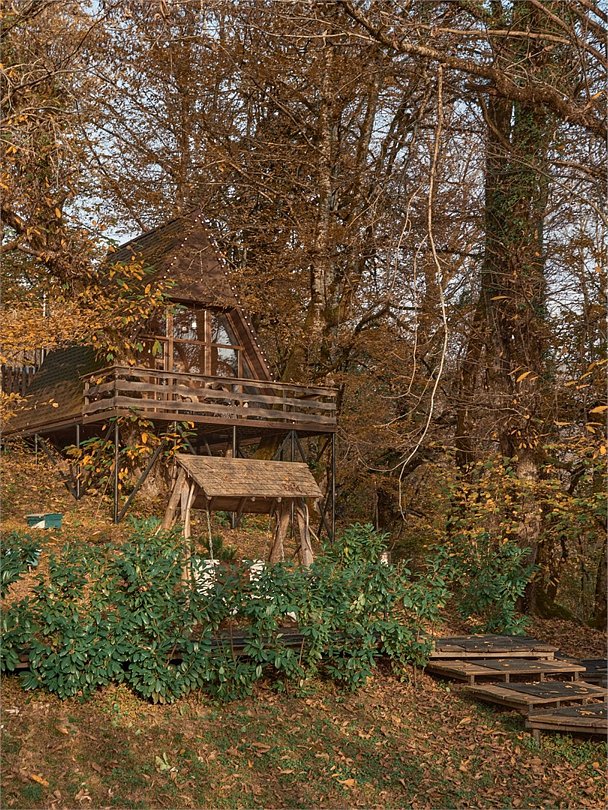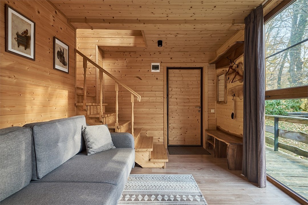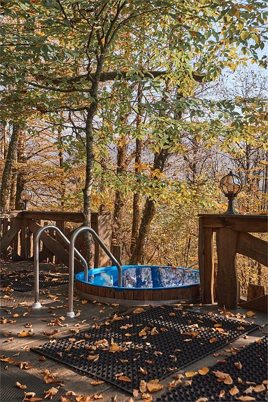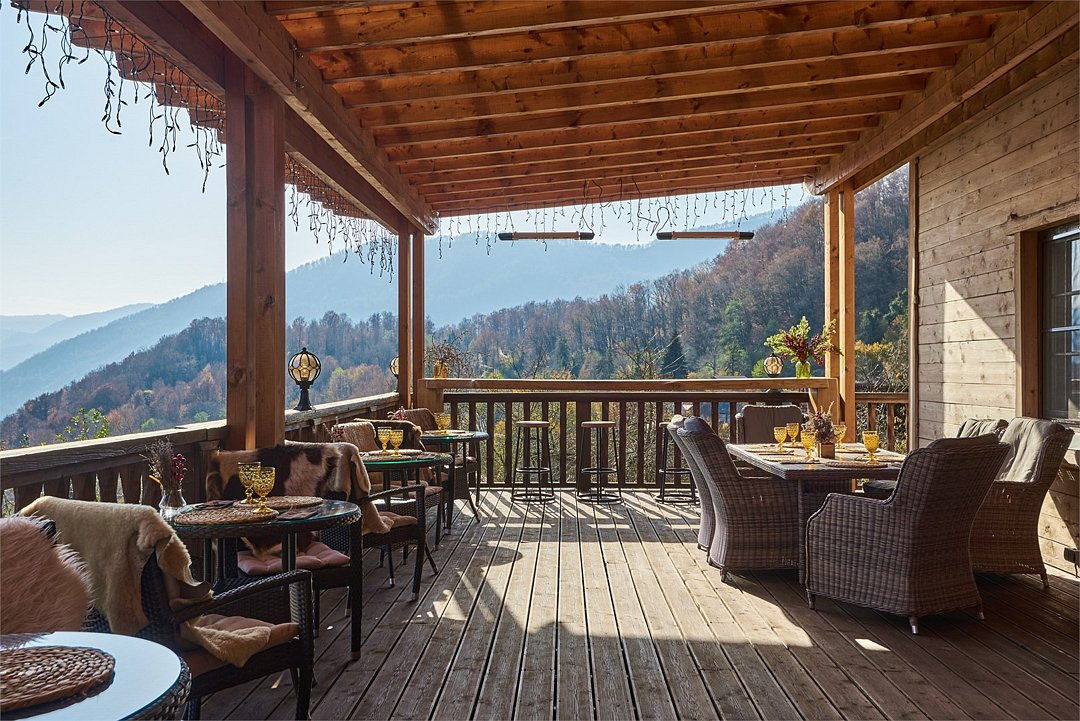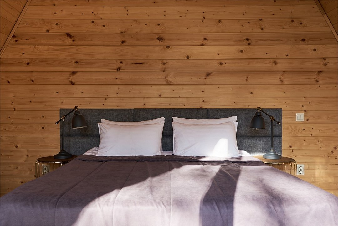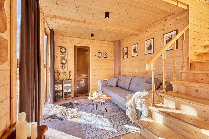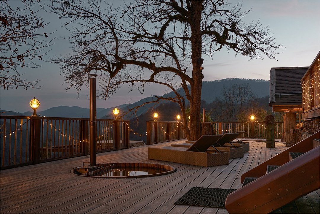 Двухэтажный коттедж в эко-стиле идеально подходит для романтического времяпровождения на природе. Мебель и предметы интерьера выполнены из эко-материалов, а все ткани натуральные и приятные на ощупь. На первом этаже расположена небольшая гостиная с диваном, который может быть использован как дополнительное спальное место для одного гостя. Ванная комната укомплектована полотенцами, феном, весами и необходимыми косметическими принадлежностями (шампунь, кондиционер, гель для душа, мыло, косметический набор). На втором этаже комната оборудована двуспальной кроватью. Из комнаты имеется выход на балкон, с которого открывается вид на завораживающую природу Кавказского национального заповедника. Для Вашего комфорта в коттедже есть махровый халат и мягкие тапочки. В коттедже есть чайная станция и кофе-машина с кофейными капсулами от Julius Meinl и корзина искушений с выбором снеков премиального качества. Все лоджи имеют стабильный бесплатный Wi-Fi. Это настоящее искушение для любителей первоклассного отдыха в горах!Услуги и удобства