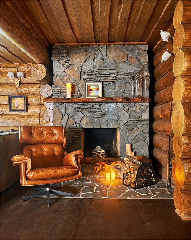 ШАЛЕ с тремя спальнями и гостиной с камином