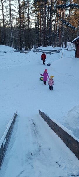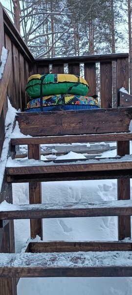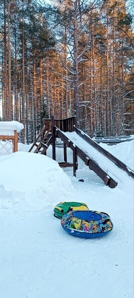 Для зимних развлечений установлена большая, массивная, а, главное, безопасная Горка с ватрушками, где могут развлекаться не только дети но и взрослые.