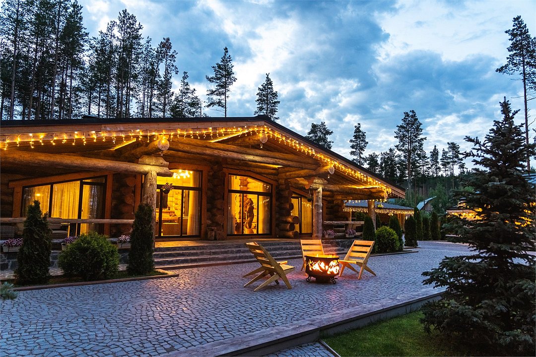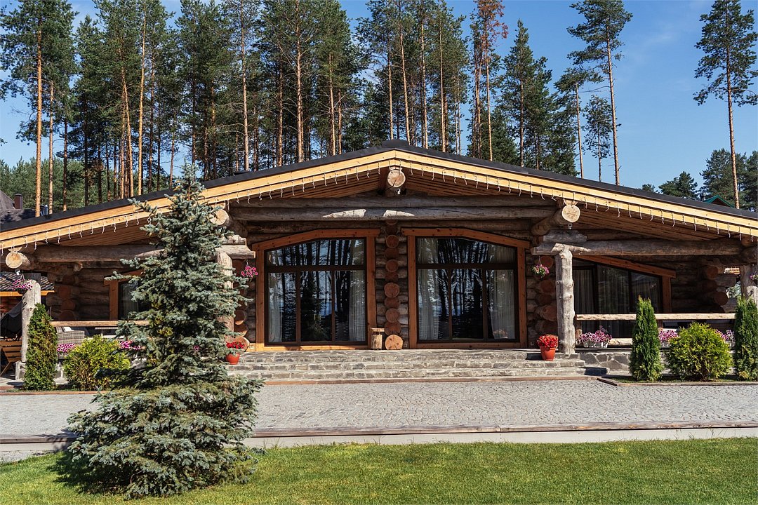 Комплекс расположен на первой линии в 30 метрах от Онежского озера. На закрытой территории находятся дом-шале с каминным залом и 5-ю спальнями, уникальная баня с двумя парилками и 4 купелями, большая беседка и собственный причал.Услуги и удобства