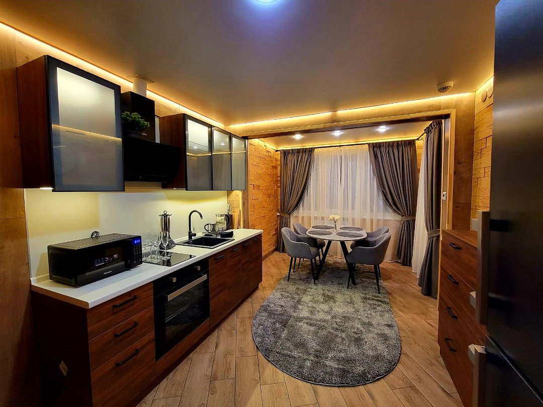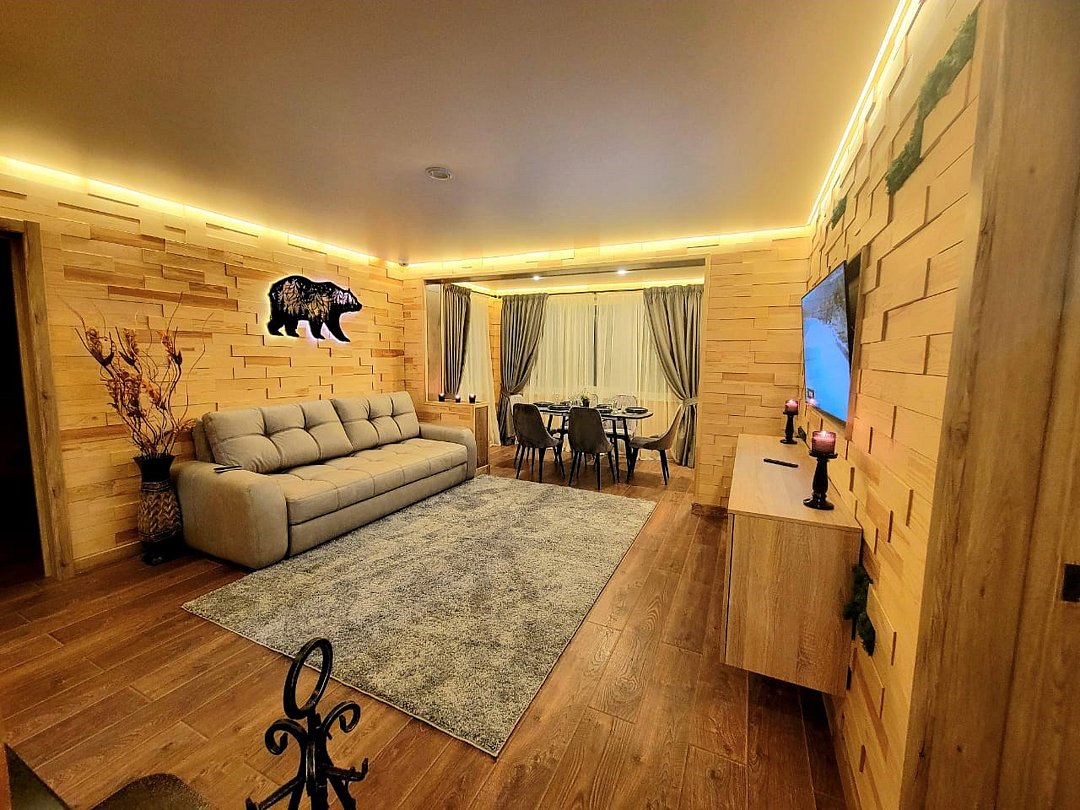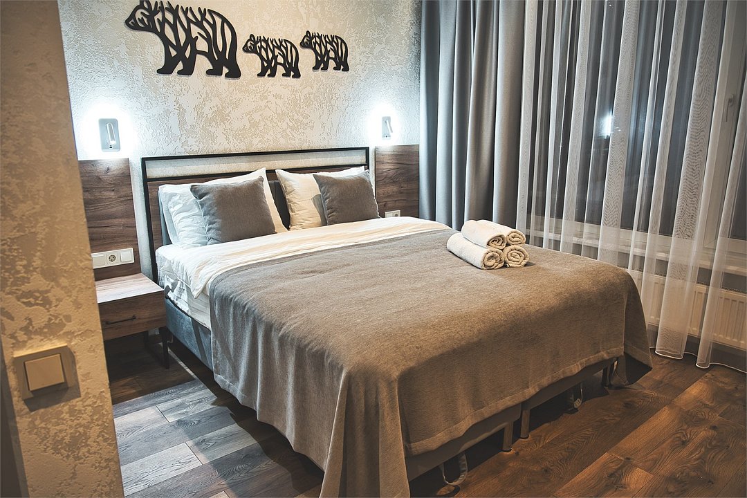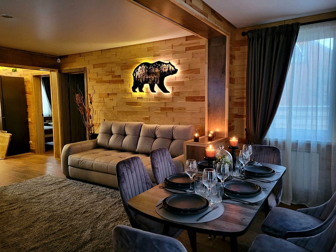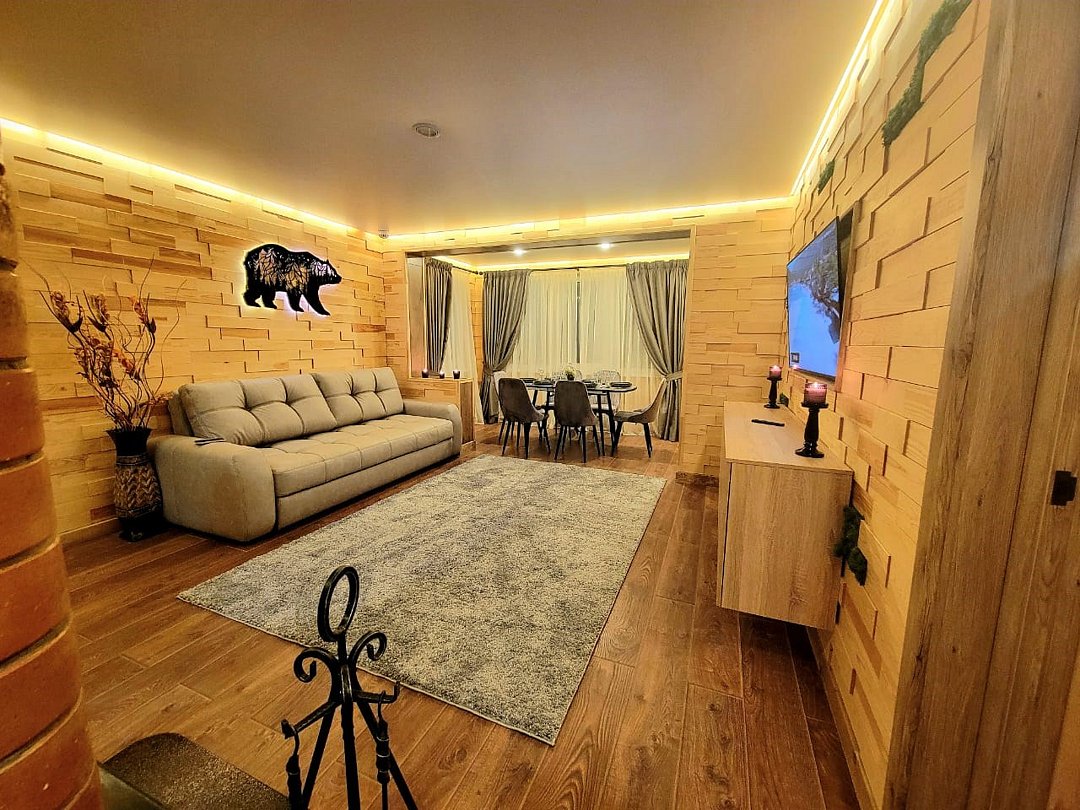 Wi-Fi, интернет, холодильник, система климат-контроля, фен, система безопасности, плита для приготовления пищи, микроволновая печь, утюг, ванная комната, теплый пол, халаты, тапочки, косметические средства, диван, гардеробная, обеденный стол, барная стойка, зеркало, эксклюзивная мебель, кухня, чайный набор, набор посуды, чайник, обеденная зона, гостиная зона, отопление, отдельный вход в номер, душ, высокие потолки, две кровати «Queen size», кухонная посуда, кухонная утварь, столовые приборы, телевизор со Smart TV, теплые полы, вид на лес, онлайн-регистрация до заезда, угловой диван-кровать, фумигатор, уборка номера, набор для приготовления чая и кофе, услуги прачечной (платно)В аппартаментах