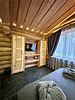 Оригинальный дом из карельской сосны кело с двумя спальными комнатами Часть дуплекса площадью 50 м2 из экологически чистых материалов Просторная гостиная с раскладным диваном Балкон с видом в лес В 5 минутах ходьбы от основного комплекса Karelia Club FamilyУслуги и удобства