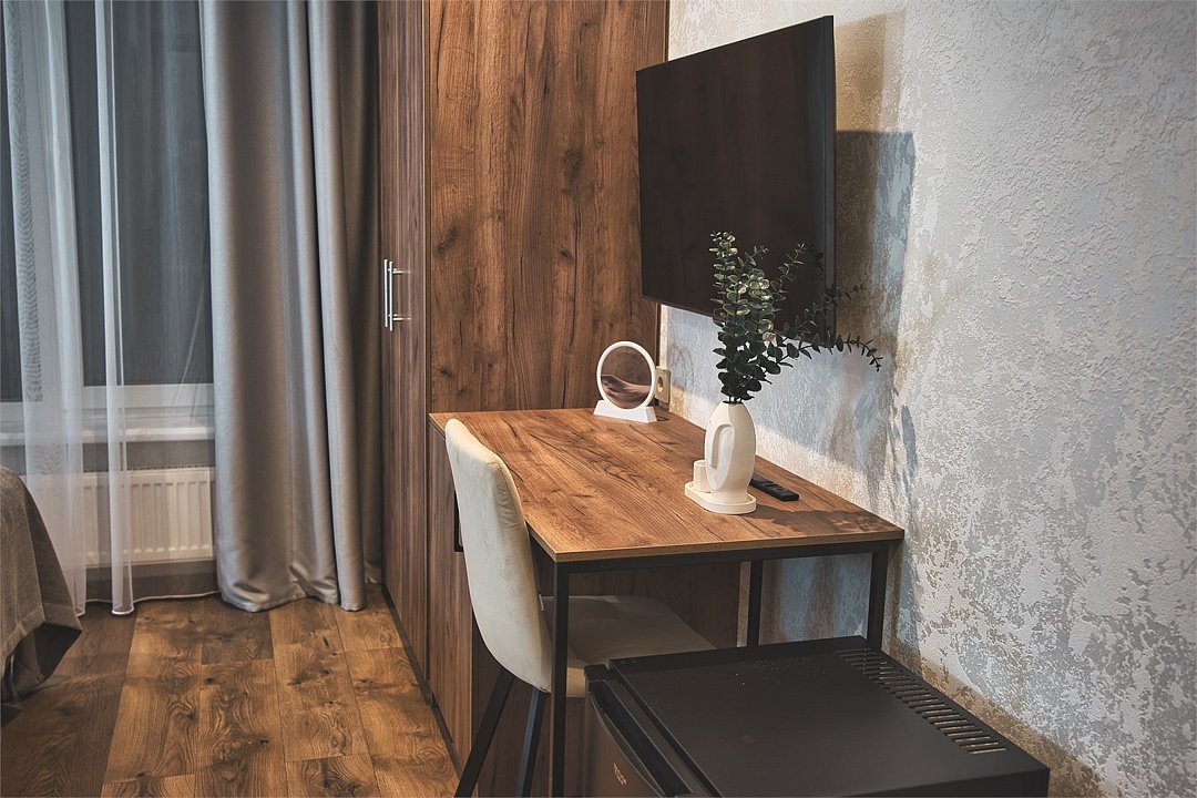 Wi-Fi, кондиционер, фен, электронные замки, теплый пол, тапочки, косметические средства, две односпальные или большая двуспальная кровать, шкаф для одежды, вешалки, зеркало, обслуживание номеров, чайник, душ, вид во двор, ламинат, стул, стол, туалет, мини-холодильник, москитная сетка, телевизор со Smart TV, номер для некурящих, вид на лес, чайная станция, вешалки-плечики, бутилированная вода, затемняющая штораВ номере