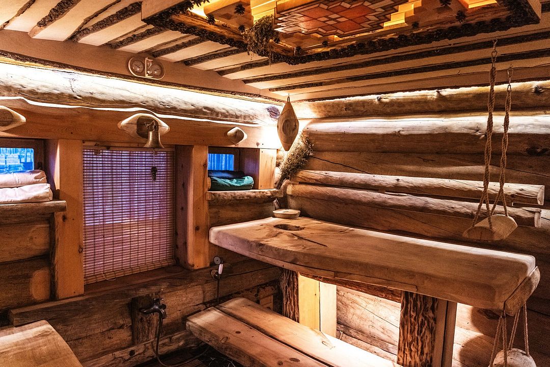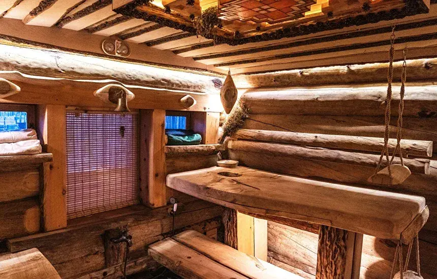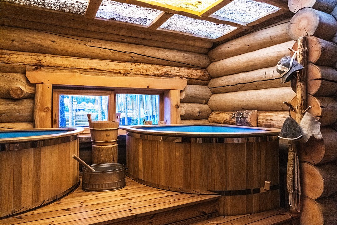 Аренда бани из рубленой сосны кело — 6500 ₽/час. Необходимо предварительное бронирование, т.к. на растопку бани уходит не менее 4 часов.