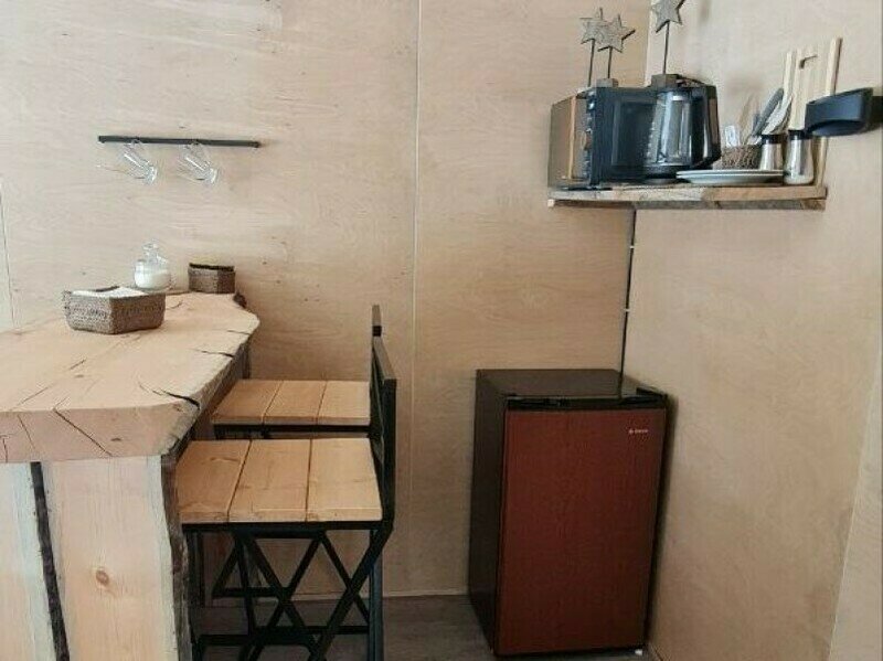 Модульные дома площадью 17м² для отдыха вдвоем. Большое панорамное окно во всю стену. Кровати с ортопедическими матрасами, белоснежное постельное белье. Удобный санузел с полноценным душем в номере, комплекты полотенец и косметические наборы. Теплые полы, кондиционер, конвекторы в доме обеспечивают в доме комфортный микроклимат. Терраса с уличной мебелью.