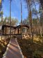 На огороженной территории расположены гостевой дом 200м², тренажерный зал, банный комплекс с купелями, парковка на четыре автомобиля. Во дворе усадьбы растут вековые сосны.