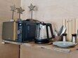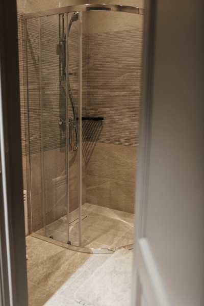 • В кухне — холодильник, посудомоечная машина, электрическая плита, чайник, кофемашина и вся необходимая посуда.