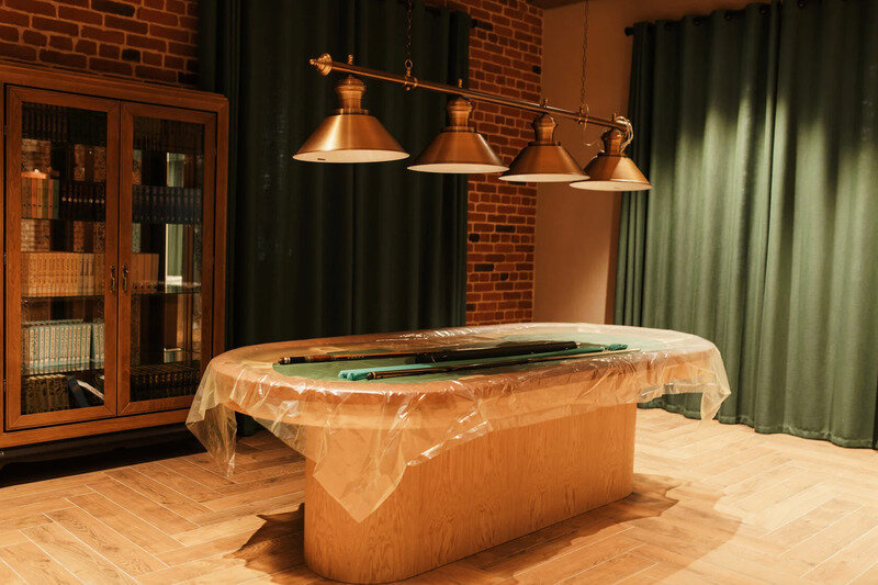 • На первом этаже игровая гостиная с бильярдом и покерным столом. ТВ-зона, библиотека, колонка Алиса, светомузыка, камин.