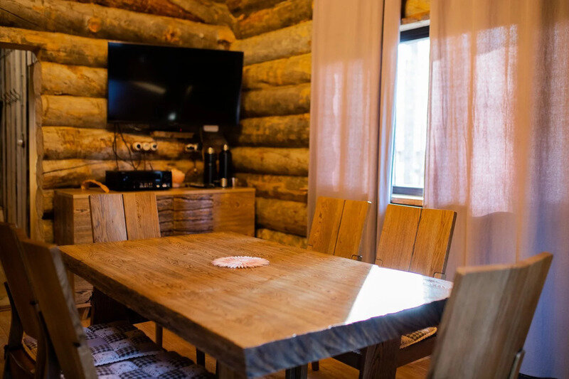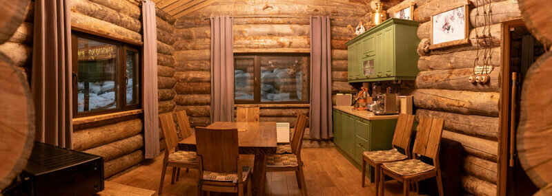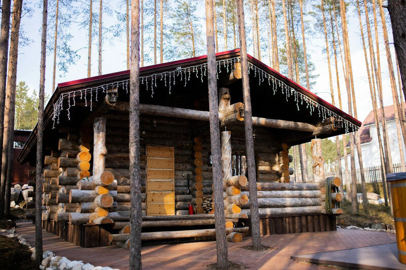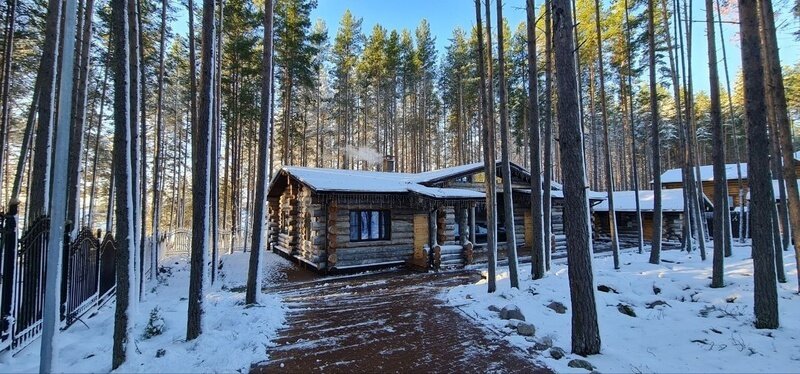 Для гостей предлагаются дома в эко-стиле, выполненные из дерева полярной сосны Кело, что позволяет тем самым насладиться особой природной атмосферой Карельского края.
