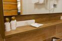 • В туалетных комнатах — фены, комплекты полотенец, халаты, косметические наборы.