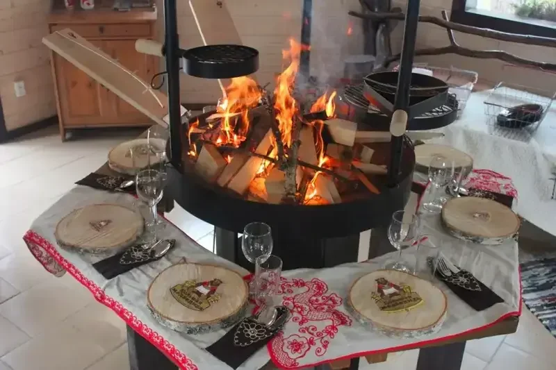 Домик, в центре которого расположен очаг, а по периметру удобно расположены скамейки. Сам очаг имеет широкий набор функций: можно использовать шампур для гриля, готовить в казане или на сковороде, запечь рыбу на специальных подставках и, конечно же, вскипятить чайник для приготовления душистого чая. Гриль–домик — наслаждение едой и хорошей компанией круглый год. Позволяет собрать за очагом до 12 человек.