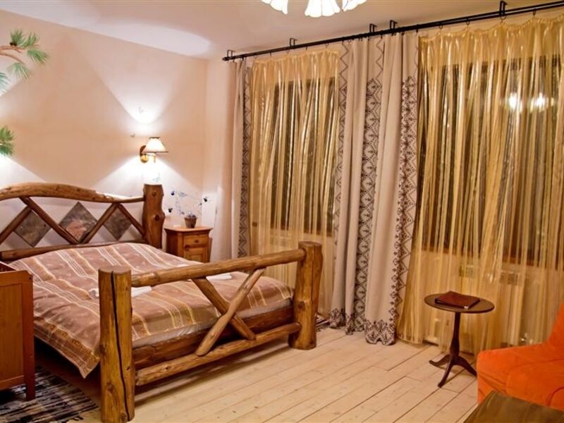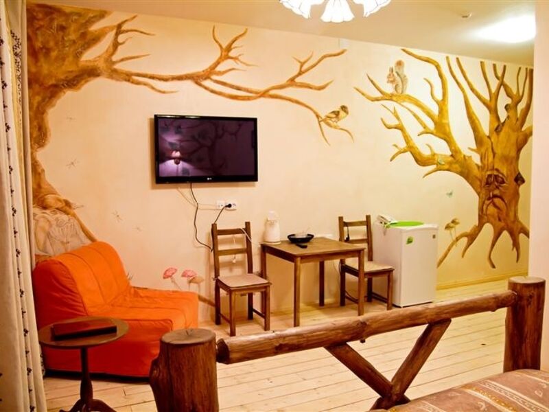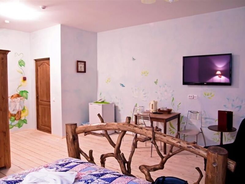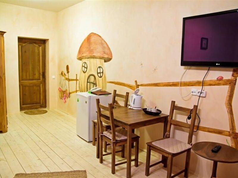 Гостиничный комплекс состоит из пяти одноэтажных деревянных коттеджей с удобствами. Гостям предлагаются 2-, 4-, и 6-местные комфортабельные номера, оснащенные стандартным мебельным гарнитуром и необходимой бытовой техникой – телевизором, холодильником, феном, электрочайником.