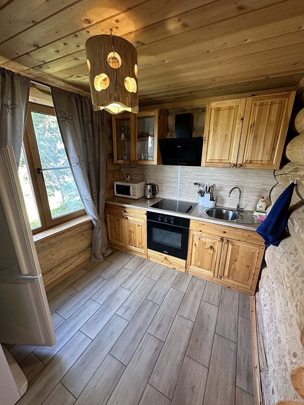 - куxня cо вcей нeобходимой поcудoй и техникой (плита, холодильник, чайник, микроволновая печь, столовые приборы, бокалы под вино);