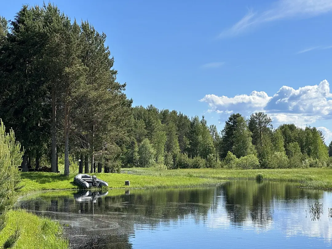 Дом из сруба первая береговая линия Карелия Челмужи. С территории открывается вид на озеро.